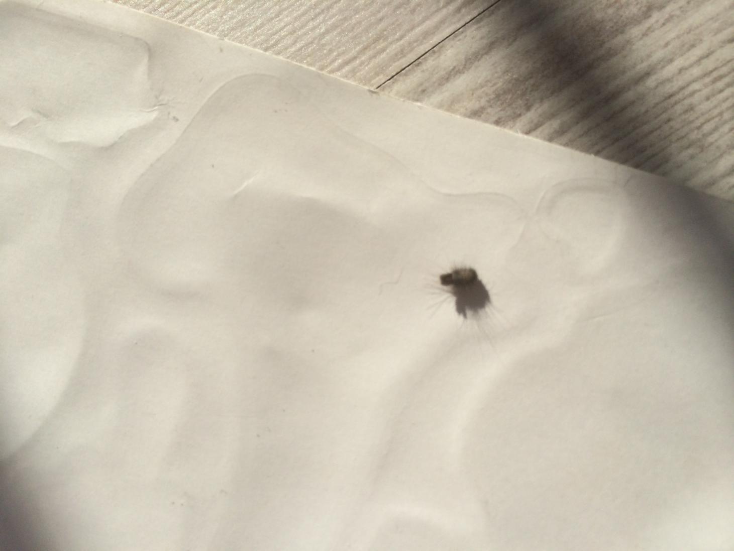 Что за странное замаскированное насекомое? Первый раз обнаружили экземпляр в ванной, а данный образец сидел в туалете. Насекомое очень маленькое, глазом практически невозможно заметить, изза того что похоже на кусочек маленькой шерсти. Насекомое при обнаружении опасности притворяется этим самым куском шерсти. --- Знатоки нужна ваша помощь 1) Что за насекомое 2) Опасно ли оно для кота 3) Откуда взялось и как с ним бороться! --- Пока насекомое слегка придавил и положил в пакет на случай физического изучения)))