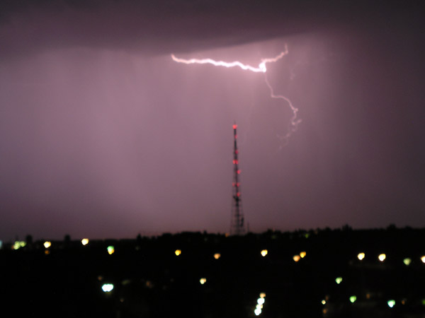 После долгой охоты на нее, все же поймал, хотя немного смазано, но суть видна. Фото сделано 20 минут назад. Молния над телебашней на Мамаев кургане.