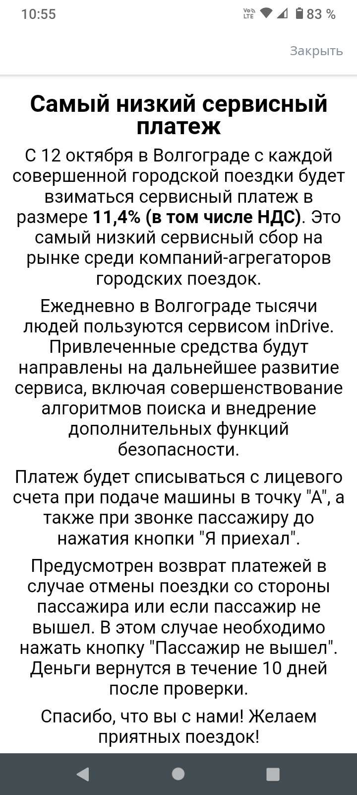 кончилась халява тысячи людей совершают поездки, а что это для миллионника ? вот интересно,цены повысятся на поездки? ведь теперь у нас урезали з\п.. и ладно было бы это такси,там хоть заказы падают чаще чем тут.. кстати кто там объяснит - сколько % брать будут? 11,4 + ндс,или уже с ндс 11,4 ? да и списание - как то написано ппц, в точку А - списали,отбился -Я на месте - списали