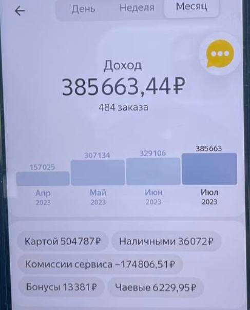 Вы, видимо, мастер в этом деле, кто-то в другом. Есть желание работать на себя - купите, кто не даёт? Ну, затираете это Вы там по стройкам, штукатурку, видимо. Мы тут - общаемся. Далее, я не говорил, что один опытный таксист, а таких много. И его результат не самый лучший. Были, есть и будут лучше. Работает он на простенькой КИА К5, купленной 2 года назад, до лютого скачка цен. Я не говорил про 400. Речь шла про 300-350+. А вот 400 это план на август. Вы плохо читаете, по диагонали, видимо, раз искажаете всё мною написанное. Мои тезисы состоят из ежедневного опыта коммуникаций в этой сфере, Ваши, судя по непониманию ситуации, только из эмоций и радости кататься на дешевом такси. Ах да, посмотрите уже на картинку, чтобы не думали, что я тут "затираю" Вам что-то. Можете даже позавидовать, но лучше молча.