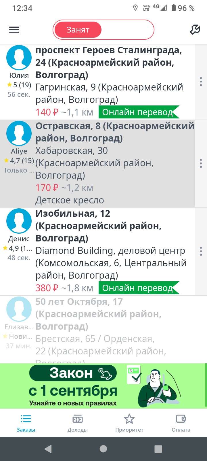 Потихоньку начал готовить к 1-му числу, поджигая кефы. Большое количество машин отключено из-за отсутствия лицензии. Одномоментно все он выключить не может - будет невывоз, поэтому оставшиеся машины без лицензии держатся на коротком поводке, еще не отключены, но и в раздачу заказов почти не попадают. Берут либо то, что уже никто не взял, либо берут в локациях где очень высокий спрос. Кассы у машин без лицензии катастрофически упали. Если раньше, в тарифе эконом, ожидание между заказами составляло максимум 2-3 минуты, сейчас это может быть 40+ минут. И очень много прибавилось соискателей на арендное авто, свои лицензировать не хотят. У них недавно произошло слияние, там новая "голова". Но, думаю, это ненадолго. Им просто нечего предложить водителю. С введением нового закона если протянут до конца года - будет праздник. Борьба с кроильщиками идёт полным ходом. Сначала вызывали эконом, чтобы передать посылку, ибо курьер и экспресс - дорого. Потом начали вызывать попутчика, потому что дешевле вдвое, а по статистике второй попутчик находится в 30% заказов, по итогу первый попутчик едет с дисконтом в одну каску. Потом начали вызывать попутчика вдвоем/троем, прикидываясь идиотами, что не знали, что так нельзя или с коронной идиотской фразой - "нас все так возят". Теперь вызывают курьера когда дешевле эконома и пытаются залезть в машину. Яндекс умыл руки, решать эту проблему пока не готов, работаем над этим сами - полная блокировка аккаунта если поездка произошла вне правил тарифа. Пока инцидентов нет, все держат оборону @prapor001, проверьте Drivee, с 1-го сентября там смогут получать заказы только самозанятые из реестра такси. Плюс, вероятно, вырастет комиссия. Прощай, Индрайвер. Это начало конца для них.