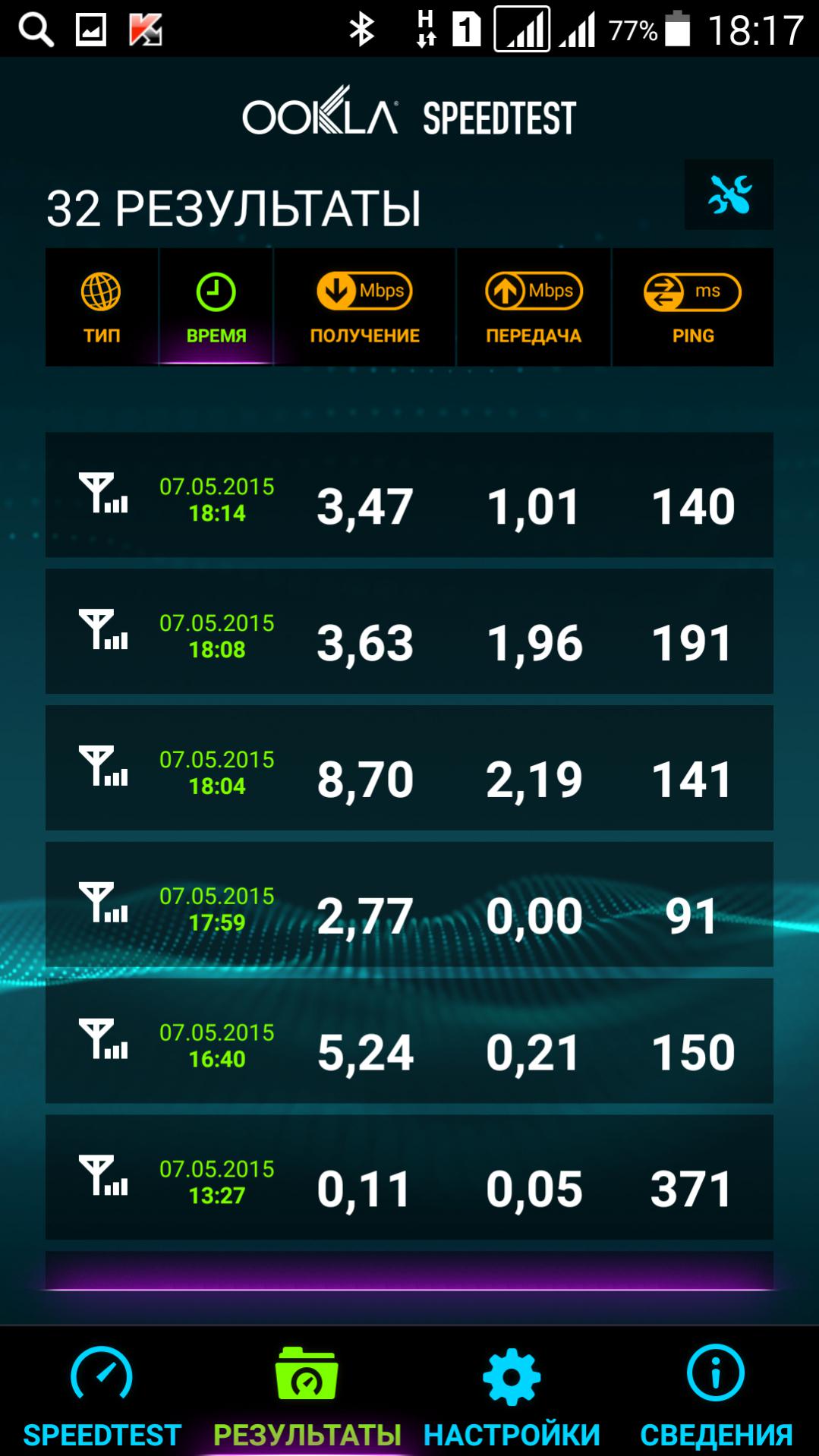 Нет такого. Остаток 19 Гб. В старой части Волжского инет стал совсем плохой последнее время. Канал крайне неустойчивый. Замерил еще раз. Прием 5,2, отдача 0,2. ЛТЕ вообще не включается около месяца