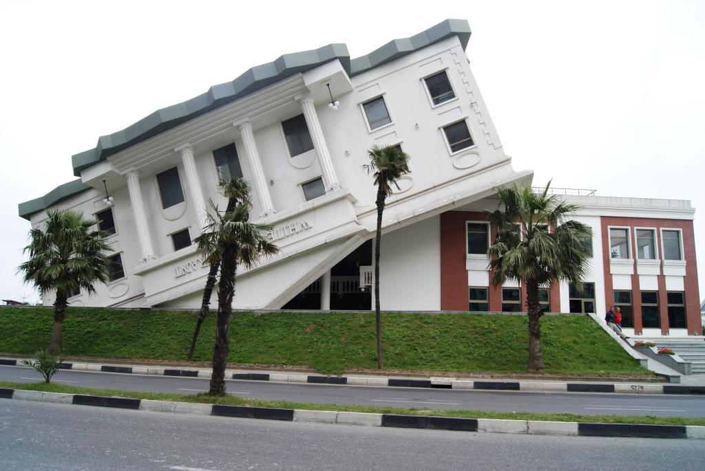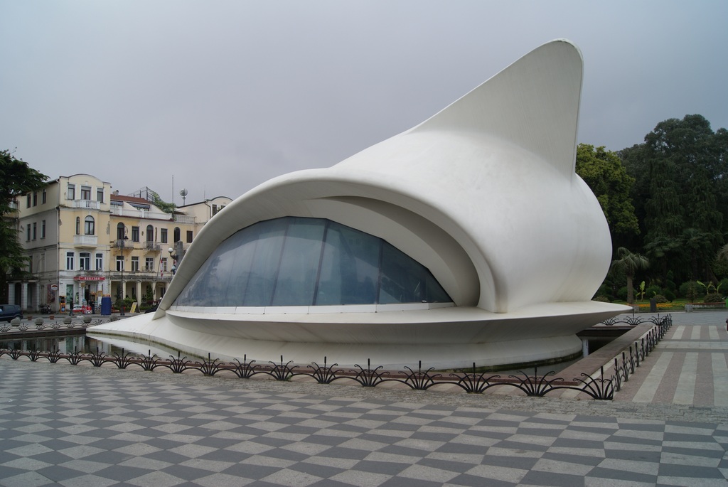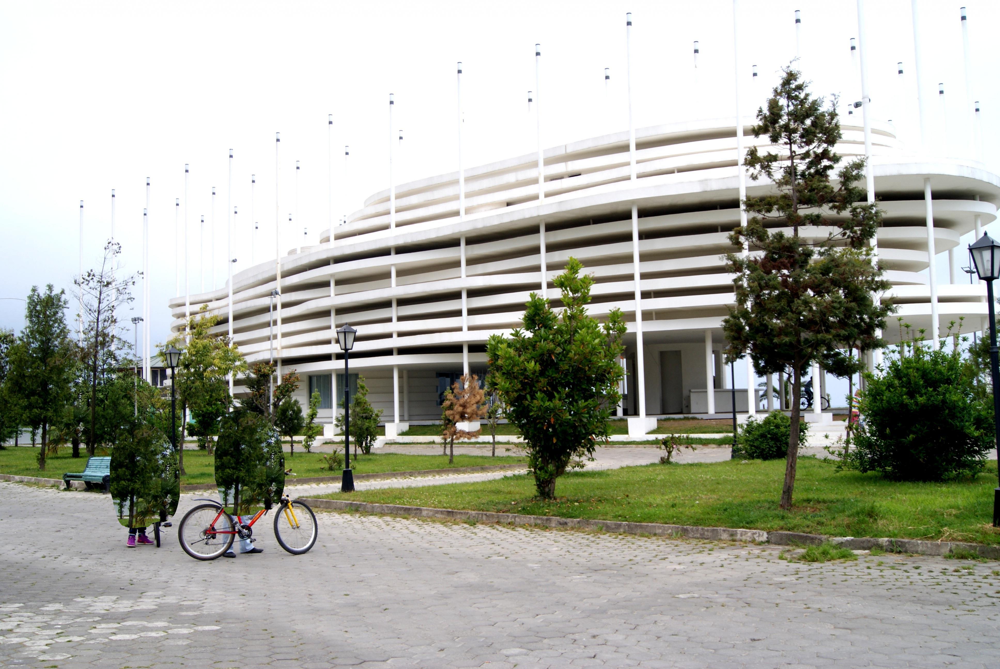 Да..оч.интересно..этажей несколько-не считал-зашли на первый попили кофе. там все наоборот внутри ..шахматный пол-потолок сверху вниз висит ёлка.. и т.д-внутри еще круче ..Хм..не уверен..не знаю .местные говорят что наоборот. Бывший Абашидзе( в Москву сбежал кажется) пытался завести там бандитские порядки - типа все въезжавшие должны платить и т.д.. Plus Это все мелочи по сравнению с парком через весь город по набережной ! и по ней же от начала города и до самого конца велосипедной дорожкой со спец.покрытием !С беспл.зоопарком и много с чем еще !