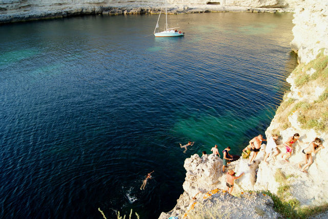 Эт правда ! Поэтому едем не в пик и на лодке нас вывозили на скалы торчащие с воды шаг и 15 м глубины..Очень красивые места..Я когда услышал как мнстные в пос.Черноморское начали убеждать-не надо ехать в Оленевку -все колесе изрежете и вообще вам там ужас!-я понял нам туда !
