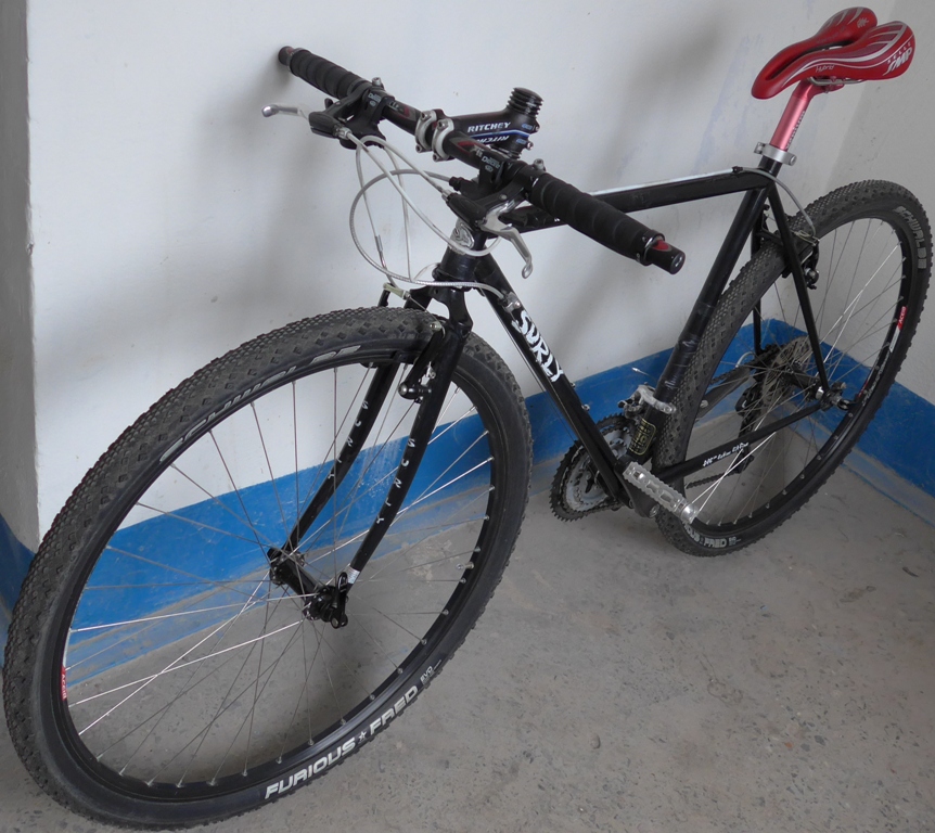 Продаю: Циклокроссовый велосипед Сурли Кросс Чек. Ростовка 52, на рост 170-180см. Рама и вилка – хроммолибденовые. Лэйбл американской компании Сурли (Surly). Произведено на Тайване. Велосипед эксплуатировался 1,5 сезона. Вмятин нет. Только потертости краски. Черная рама легко подкрашивается из баллончика с краской за 200 руб. Передний переключатель (3*9) – Шимано Тиагра. Задний переключатель, длинная лапка (3*9) – Шимано Деор Шедоу. Эксплуатировался 0,5 сезона. Кассета стальная 9 скоростная – Шимано 12*36 Цепь Срам 991. Система стальная туринговая (26*36*48) SRSUNTOURXCTV2 Каретка квадрат 68*118 Втулка задняя Чозен (на 36 спиц) на промах. Втулка передняя Квандо (на 36 спиц) на промах. Обода Алекс Римс DH 19 на 36 спиц , толщина 22,5мм. Спицы нержавейка тянутые. Покрышки (комплект) Швальбе Фьерис Фред 2 дюймовые (50мм) вес каждой 360г. Покрышки (комплект) Швальбе Марафон Мондиал Эволюшн с защитой от проколов 5 класса (47мм) вес каждой 750г. Эксплуатировались 0,5 сезона. Камеры Швальбе, ширина 1,5-2,4 дюйма, залит герметик. Колеса эксплуатировались менее 1 сезона. Тормоза – ви-брейки. Стоят мини ви-брейки, еще обычного размера ви-брейки. Манетки – Шимано Деор. Левую манетку нужно менять. Зажим поседела – стальной фирменный Сурли под шестигранник и алюминиевый эксцентриковый из Декатлона (новый). Подседельный штырь – двухболтовой Ксениум 27,2 мм. Седло – Итальянское – Селе СМП – модель Гибрид. Руль алюминиевый, длина 600, диаметр 25,4. Грипсы анатомические мягкие с фиксаторами. Вынос Ричи, длина (по осям) 110мм, 18*. Багажник хроммолибденовый Тубус Карго, вес 560г. Один серьезный поход. Остальное с легкими сумками. Сумка рамная большая черная новая. По цене: 1. 25000 руб. 2. 22000 руб без антипрокольной резины, сумки и багажника.