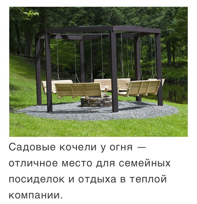 Скоро лето, скоро дача, посиделки у костра. Нашла в интернете картинку той беседки которую хочется. Именно беседки от слова беседовать, а не пожратьки-попитьки-семкипоплеватьки Хочу такую конструкцию, только в основу прямоугольник типа квадрат Помогите соображениями из чего делать, какой фундамент, как сделать подвесы, сиденья, очаг и т.д... Как рассчитать нагрузку на сиденья, из чего и как сделать крышу или какие-то козырьки на сиденьями. В первую очередь материал конструкции и фундамент под него.