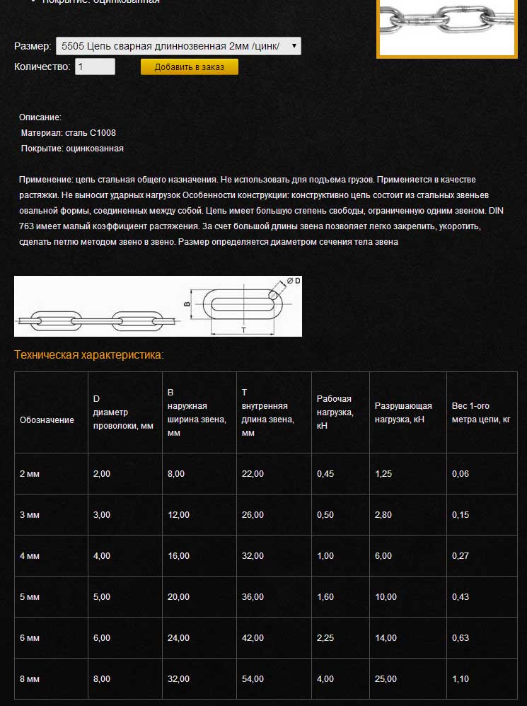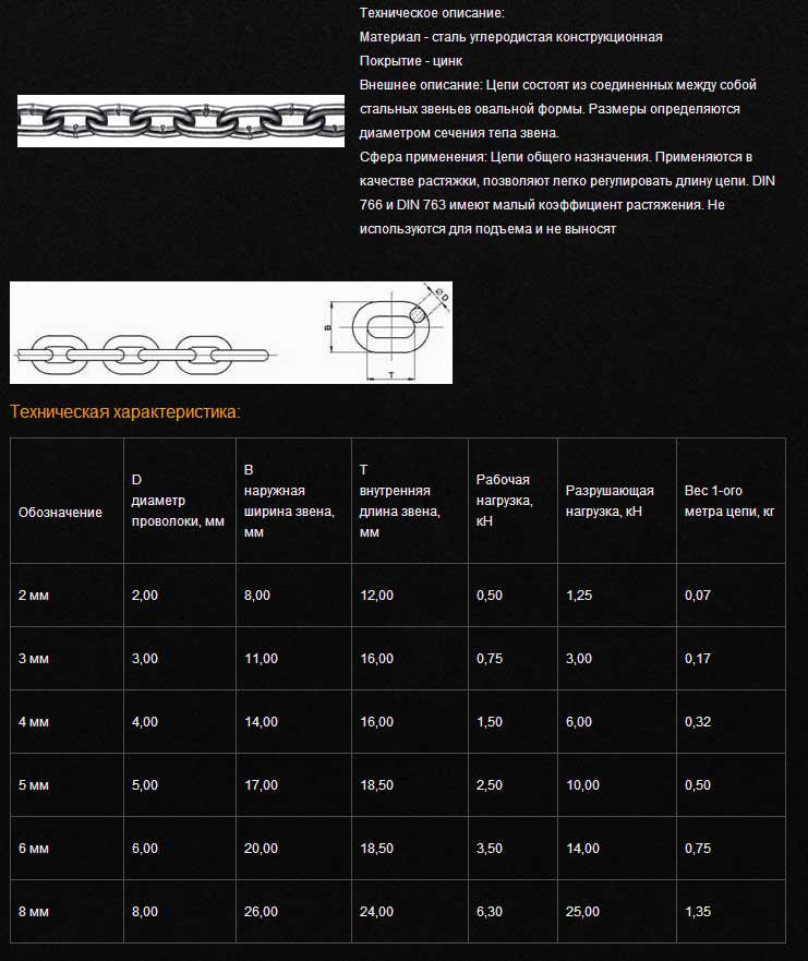 Что там дальше? Цепь? Вот параметры цепей - выбирайте любую, чтоб рабочая нагрузка была не менее 1 кН. (это примерно 102 кг.)