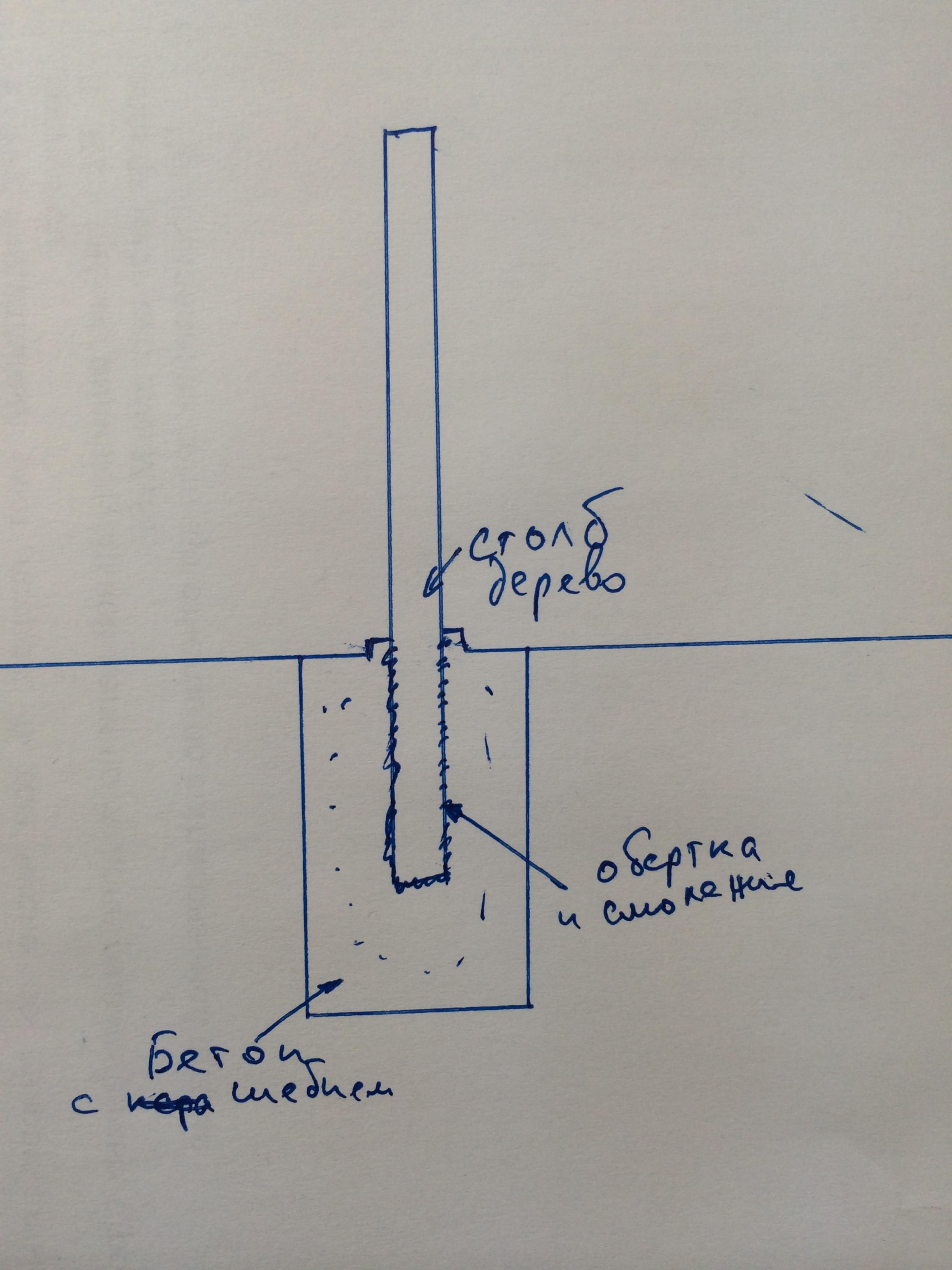 а такой вариант имеет право на жизнь? столб смолиться, оборачивается рубероидом и заливается бетоном с щебнем не достаёт до земли? А то вот со сваркой я не дружу(((
