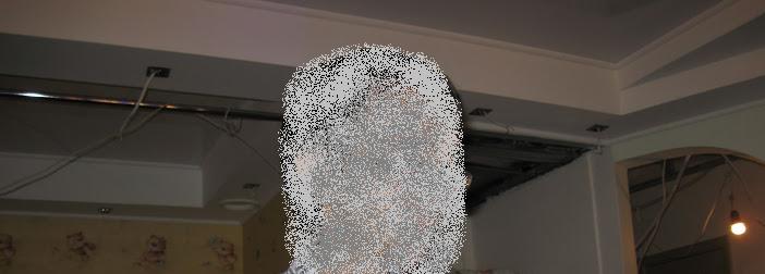 В коридоре встроенный шкаф, в комнате короб по периметру стены. В центре натяжной глянцевый - по крайней мере я ростом не вышел, не давит. До ремонта воздуховод висел, после на заднем плане можно разглядеть. Как то так спрятан. Как раз кстати от же место, что и в предыдущем сообщении с тремя воздуховодами.