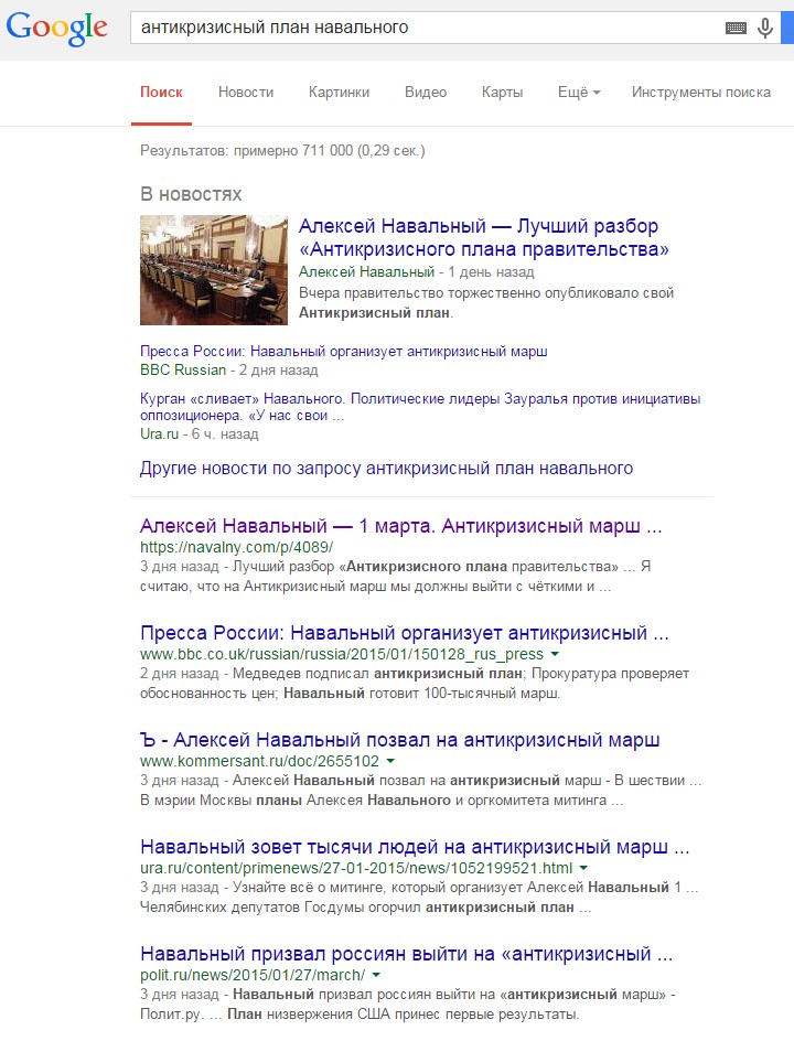 ну ради чистоты эксперимента я проверил что знает google об антикризисном плане навального... оказалось - то же, что и яндекс, ничего. странно, да? вот про то, что лалала это сингл какой то шакиры, они знают оба. а про план навального - нет.