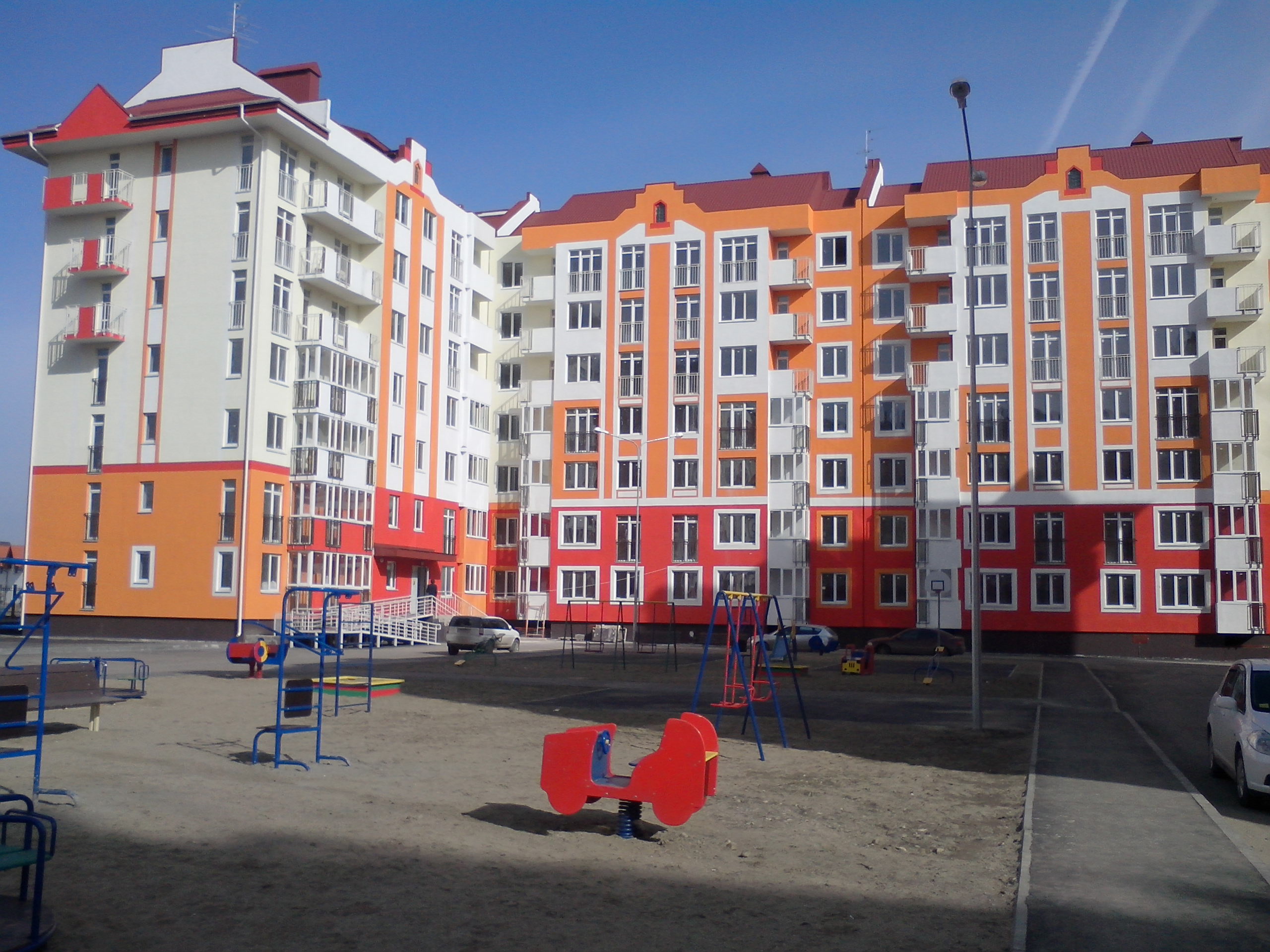 В комплексе есть сад и школа.