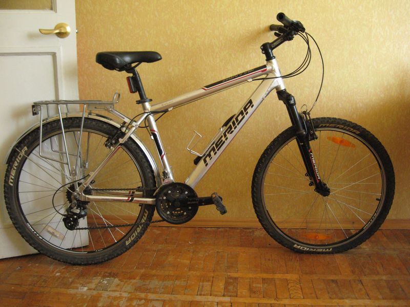 Лот №1 Merida Matts 10V (серебристый) Размер рамы 18". Пробег 3 сезона, не больше 1500 км. Короткие поездки по городу и за Волгу. Всё родное, ничего не менялось. Всё работает. Смазывался и обслуживался вовремя. В комплекте заднее крыло и крепкий, лёгкий алюминиевый багажник. Стоит задний фонарь. Есть крепление на руле под фонарик. В шинах герметик + запасная камера. Креплений для бутылки. Для начинающих отличный вариант. Цена 8 950 рублей. Лот №2 Merida Matts 40D (белый) Размер рамы 20". Дисковые гидравлические тормоза. Пробег 1 сезон ~ 500 км. Всё родное, ничего не менялось. Все переключатели работают. Смазывался и обслуживался вовремя. В комплекте заднее крыло и крепкий, лёгкий алюминиевый багажник. Сумка на раме. В сумке ремкоплект для шин и набор ключей. Беспроводной велокомп. Стоит задний фонарь. Крепление для бутылки. В шинах герметик. Цена 16 950 рублей. Лот номер 3 велорюкзак-штаны Мираж 80. Природы на велосипеде так и не увидел. Пару раз использовал его для поездок в поезде. Состояние отличное. Цена 2000 рублей. Если покупать комплектом (в любых вариациях), будет существенная скидка. Если покупаете оба и в течении недели скидка 2 000 рублей за комплект.