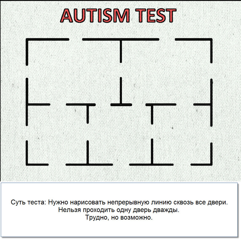 Хе, спасибо за мышь. А решение этой задачи на Аутизм такого, что тут нет решения. Невозможно провести единую линию через все двери.