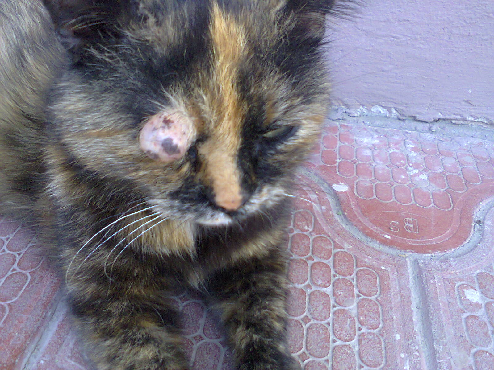 Приехал в магазин, во дворе увидел кошку, вроде как беременную. На голове у нее, над правым глазом непонятное что-то: вроде кожаного мешочка размером с фалангу пальца, вытянутой формы. Ввиду объективных причин заняться ей не могу, но вдруг у кого есть такая возможность и желание - реально жалко животинку, выглядит это дело плохо. Территориально кошка на красном, на поддубного 9, когда неделю назад приезжал туда по делам шишка была намного меньше. В общем, если кто может, помогите ей, пожалуйста.