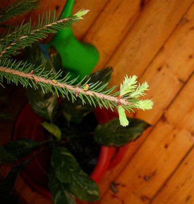 Ветка елки в вазе растет.Чего делать то? Из веток повылазили отростки с маленькими иголками.Корней вроде нет...