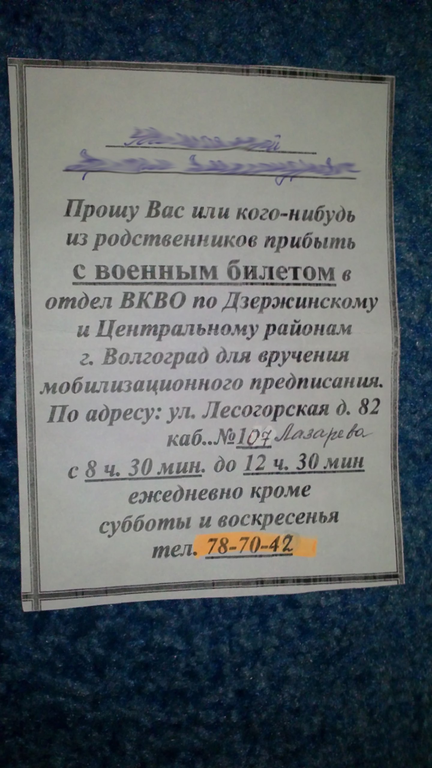 "Прошу Вас". ПоржалЪ. Всё ремя было "Приказываю Вам..." и конкретное время. Мобпредписание регулярно обновляли.