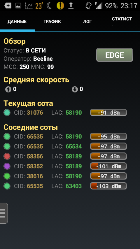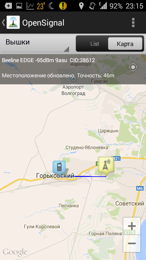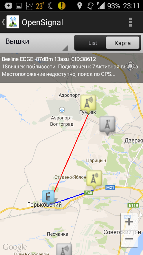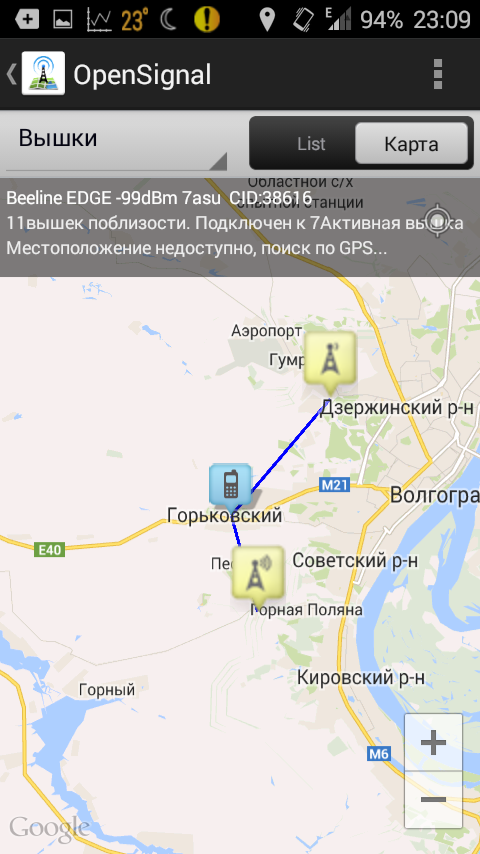 Вот результат.... Я понимаю, что произведенные непонятно каким оборудованием и софтом измерения ничего не значат, но иллюстрировать-то надо чем-то, я ж не Псаки))) Обращаю внимание, что: - телефон цепляется за далеко расположенные вышки. Почему не юзает ближние?Это ведь не телефона бзик, а специфика настройки передающего оборудования - UMTS отсутствует почти. Вот в одном углу квартиры ловится, и все. Я скорость интернета и не замеряла, потому что это бессмысленно, нет UMTS Данные о месторасположении многострадального телефона вместе с владелицей улетят сейчас в личку Билайн Для инетересующихся - это поселок Горьковский, ул Волгоградская.