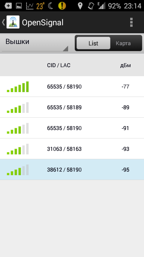 Черная злобная зверюга, а что это у тебя за программа? Бс 58276 это аэропорт... Ближе как будто нету... ---------- Сообщение добавлено 27.07.2014 00:08 ---------- Порял, open signal ---------- Сообщение добавлено 27.07.2014 00:09 ---------- Черная злобная зверюга, а мегафона и мтс сколько дБ у тебя сигнал в квартире?