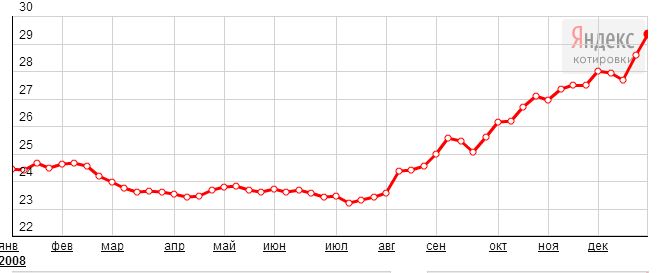верно. верно, на 5. хорошая у Вас память. и потом резко доллар подрос - в итоге на 12 российских рублей. примерно с 24 до 36 р. сколько это в процентах ?