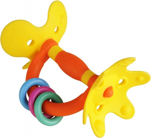 Даша не выпускала изо рта вот такой прорезыватель pigeon. Конечно и другие вещи попадали на зубы, в основном деревянные игрушки (пазлы и матрёшка особо шли в ход). Из мебели не доглядели только за пуфиками, немного пострадали.