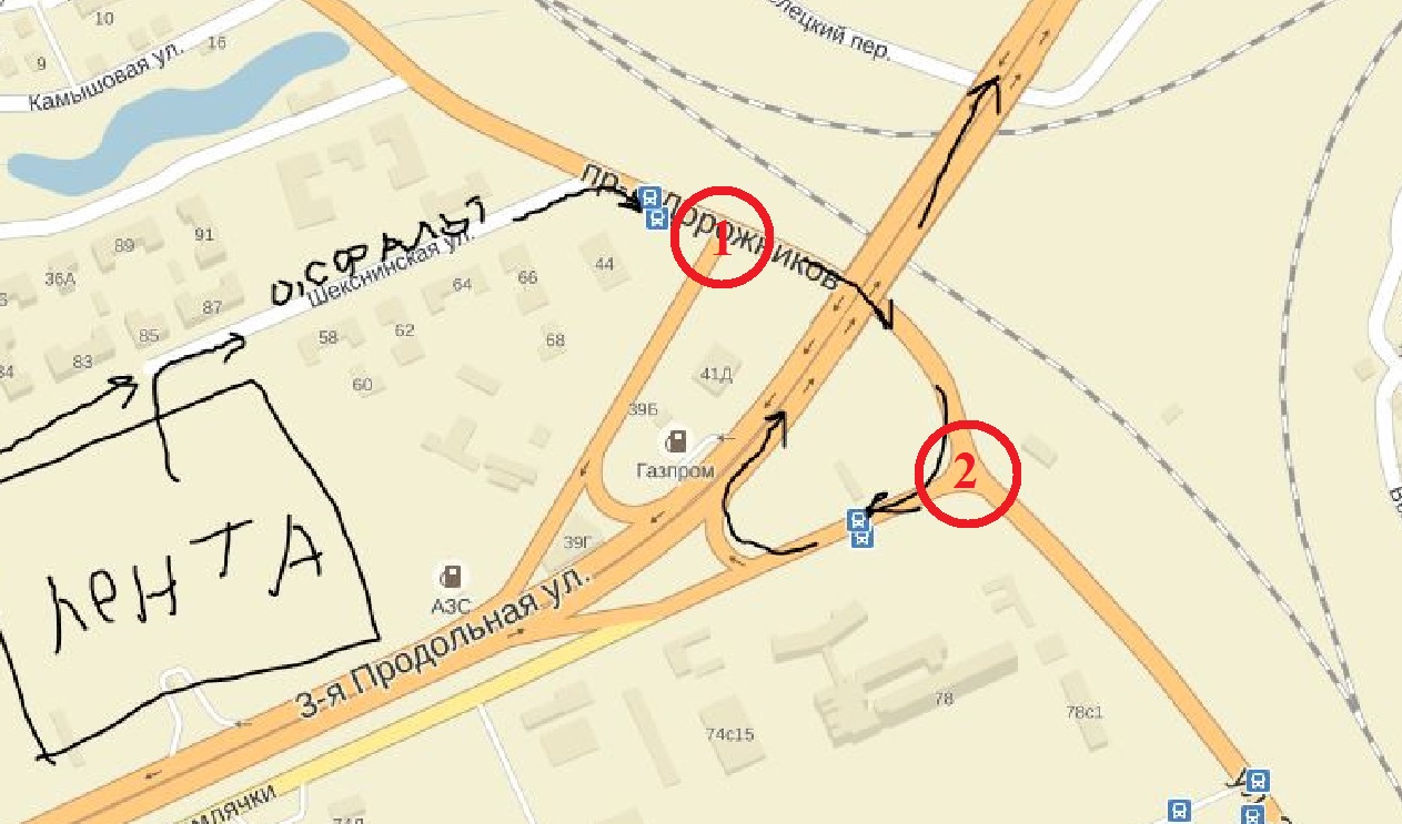 Сейчас подъезды к перекрёстку 1 слегка расширили (но это не спасёт ситуацию), а на самом перекрёстке поставили стойки под светофоры. Установка светофоров повлечёт образование пробок. А с вводом магазина на этом перекрёстке пробки будут во все стороны. Думаю, пробка будет вплоть до перекрёстка 2 и там тоже начнётся коллапс. С учётом того, что мост у Киляковки всё же введут, то к этим перекрёсткам прибавится трафик фур идущих к (от) Волжского. Каким местом думают господа-товарищи дающие разрешение на строительство?
