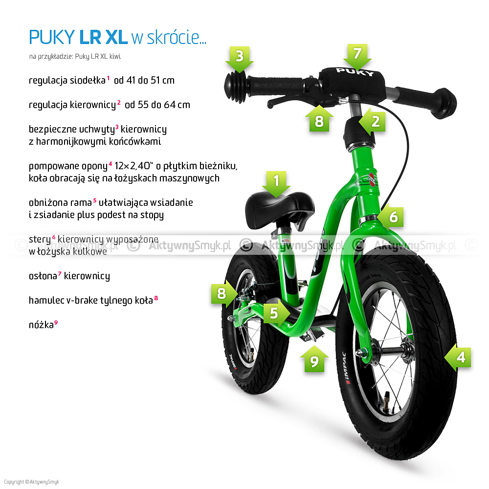 http://puky-russia.ru/begovel-puky-lr-xl/ В отличном состоянии! Полный комплект, есть отдельно зеленая каска(под цвет) 300 руб. Лучший беговел, высокое качество изготовления(Германия), отличный накат, мощный тормоз, удоное сиденье и ручки. Покрышки бескамерные, подкачивать почти не придется. Ваш ребенок будет быстрее и маневреннее детей на любых великах с колесами 12 дюймов. Большой плюс в том, что мы сразу уже пересели на "взрослый" велосипед и держим равновесие с первой поездки. Цена в магазине 8400. Моя цена 5000. [ame]http://www.youtube.com/watch?v=DWPBYGljAjI[/ame] Артикул: 4048 возраст 3-5 размеры 95-110/от 42 см колеса 12,5'' накачиваемые седло 40-48,5 см, с тормозом, с подставкой вес 5,5 кг нагрузка нагрузка 50 кг Описание Продвинутый беговел с регулируемым тормозом для детей от 3 до 5 лет. Характеристики На рост от 95 до 110 см Вес: 5,5 кг (в коробке 6,6 кг) Регулируемая высота седла 40 - 48,5 см Регулируемая высота руля 54-63 см Накачиваемые колеса 12"х2,25'' на подшипниках Регулируемый тормоз, подставка для парковки Безопасность Barpad (противоударная подушечка на руле) Безопасные ручки на руле Рама с низкой подставкой