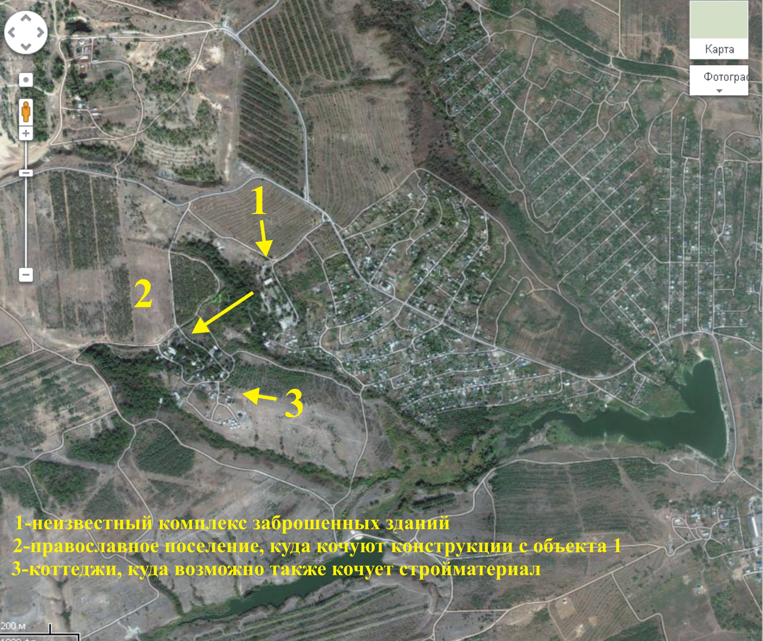 Покатался ныне по изведанному маршруту http://www.forum-volgograd.ru/attachment.php?attachmentid=167229&d=1411828787 Природа зеленеет, водоема наполнены, красиво в общем. На кольце 1с или 2с свернул вправо, где обнаружил комплекс заброшенных зданий, на лагерь похоже, все заброшено, мусора куча. Проехал чуть дальше и обнаружил некое "Православное поселение ... " (название со "Слобода" созвучно, но забыл. Это в соответствии с градостроительным кодексом такой новый вид поселений ???). В общем, как оказалось конструкции с заброшенных зданий кочуют в это православное поселение (см.фотки). Дома православные с кондерами и спутниковыми тарелками . А рядом, шо забавно, коттеджики неплохие, но к ним уже не поехал . Мож тоже их делают из биплатного стройматериала . Кто подскажет, что за комплекс заброшенных зданий и что за православное поселение ? https://maps.yandex.ru/?ll=44.362716,48.595985&z=17&l=sat,skl