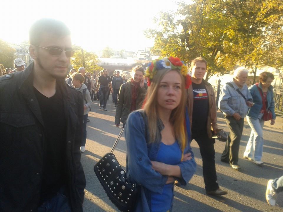 даешь в Киеве марш за мир на Донбассе! С флагами Украины и Новоросии! Плакатами "Порошенко, руки прочь от Донбасса!" и "Яценюк - наш геморрой!"