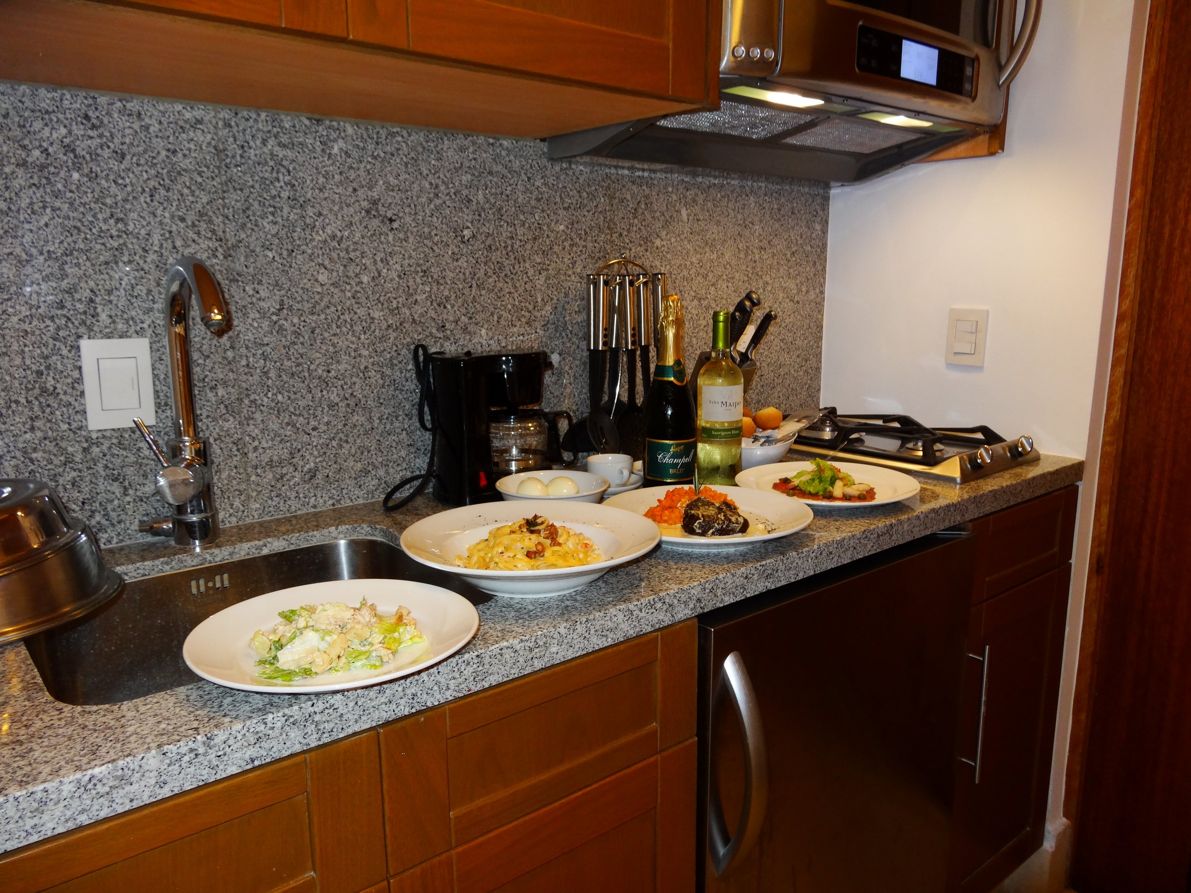 При возможности сейчас выбираю отели с кухней, т.е. апарт-отели, всегда можно побыстрому покушать сообразить. Если же будет бесплатный рум-сервис, то даже заселение в час ночи не проблема для нормально покушать. Еще лучше, как на фото, когда и кухня и бесплатный рум-сервис включены)