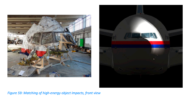 Глаза видят что хотят На той фотографии нет даже двух в ряд пробитых. Есть одно пробитие и второй поцарапан с краю. Или же осколки научились летать по дуге, или это два разных осколка. Это что касается фотографии. А по отчету, конечно 10 слайдов АА легче проглядеть, чем сотен семь страниц голландского отчета мелким пунктом. И как обычно, "не читал, но осуждаю". Самое смешное, что для точного определения положения детонации достаточно посмотреть отверстия на рулевых тягах и раме кресла первого пилота. Да и вообще, давно пора переходить к последней линии обороны: "это были неизвестные ополченцы с трофейным буком".