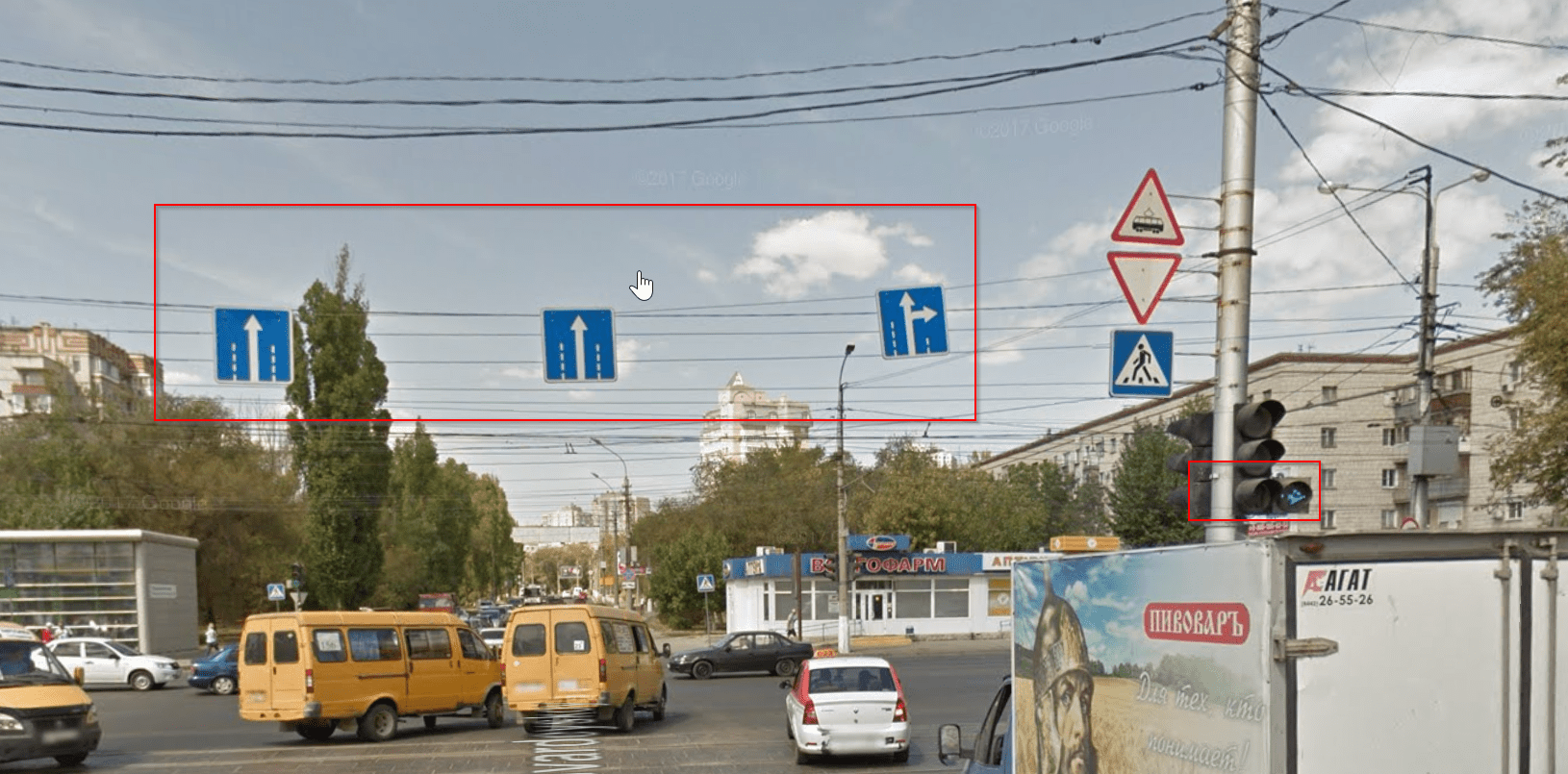 есть лучше (или хуже, как посмотреть) пример: https://yandex.ru/maps/38/volgograd/?l=stv,sta&ll=44.431174,48.635428&panorama[direction]=225.633664,0.000000&panorama[full]=true&panorama[point]=44.430125,48.636771&panorama[span]=117.298072,60.926007&z=17.95 Две стрелки. Одна - налево, другая - направо. Не синхронизированы (сначала горят обе, затем остается только направо). Из левого ряда, как видно, можно только налево; из правого - прямо и направо. Если остановится в правом ряду (на основной красный при горящей стрелке направо), с высокой вероятностью будут гудеть. Но при этом ОЧЕНЬ многие умники там еще и с правого ряда поворачивают налево.... А другие (но таких чуть меньше) - из левого ряда едут прямо.... это помимо того, что те, кто под левую стрелку (при горящем красном) поворачивает, зачастую не уступают тем, кто перпендикулярно им на свой законный зеленый едет... вот где перепись одаренных нужно вести.