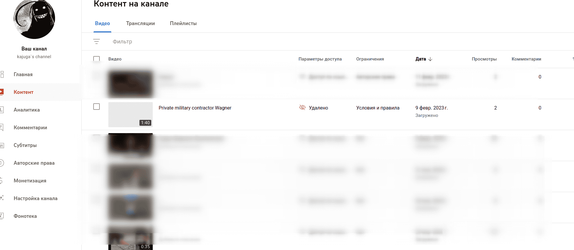 меня заблокали за ролик, который не выкладывал и не собирался никуда выкладывать (т.н. "доступ по ссылке"): "мы обнаружили в ваших видео..." и чпоньк - бан до конца марта вроде.