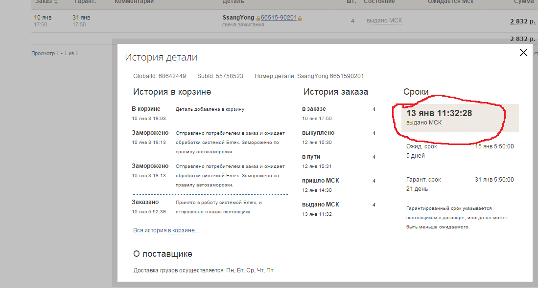 эти же свечи в автодоке. В емексе бесит их ожидаемый и гарантированный срок поставки. И от казаться от заказа нельзя...