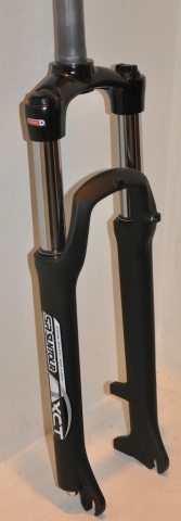 Вилка Suntour SF13 XCT MLO, для велосипедов 26", черная, ход 100 мм, крепление диского тормоза Post, штаны алюминий, ноги ø28 мм, стальной штырь, правая нога: механическая блокировка хода, левая: жёсткость пружины, вес 2500 грамм. Новая. 2500 р.