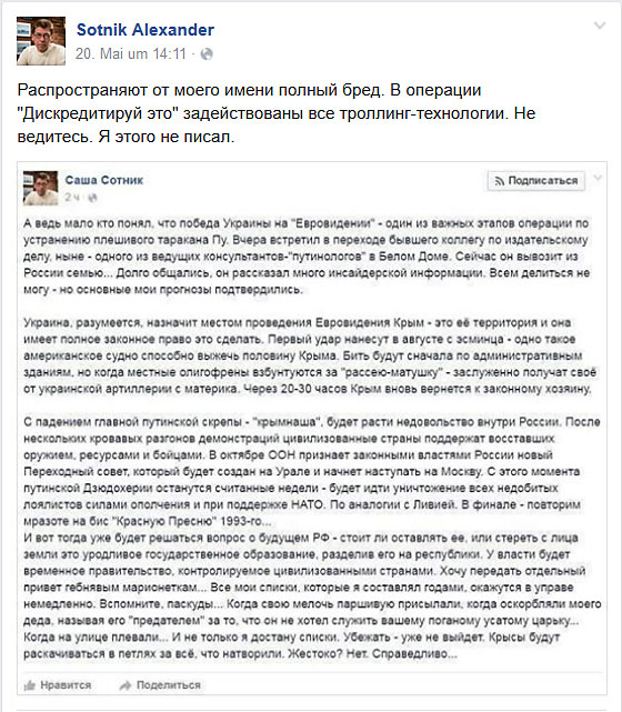 Каким бы не был двинутым данный персонаж, но тут очередной фейк. Правильно, поразжигаем и подискредетируем сильнее!