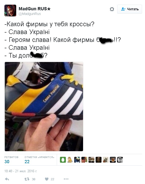 ок. С этим выродком понятно. Кто для вас люди, ставящие памятники бандере и называющие в его честь улицы и проспекты? ---------- Сообщение добавлено 21.07.2016 23:43 ---------- Plus, вы вот зачем тему майданную разбередили? Вспомнилось, что тама аист кропал - появилось желание дикое пыром ему ботинок загнать промеж челюстей.