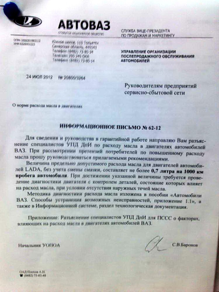 есть такой информационное письмо про 0,7 л только оно 12-го года, т.е. и к твоему приородвигателю тоже относилось. вот так вот интересно вернулась плата за экологию и прочие T-поршни. общая тема, не только ВАЗ.