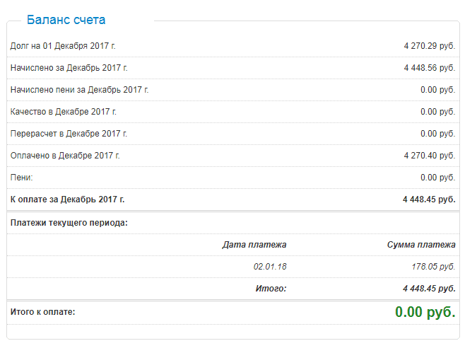 Я еще раз напишу - в кабинете ИВЦ бардак. Вон та табличка считает только внутри месяца. Чтобы увидеть реальную сумму, нужно перейти в Начисления и платежи и там посмотреть исходящее сальдо за декабрь.
