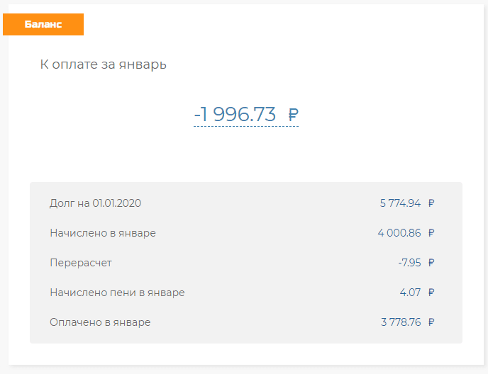 @Deceiver, в личном кабинете (да и в платежке) - только текущий месяц. Долг конечно в платежке тоже есть, но по категориям, общей суммы нет. надо в начислениях исходящее сальдо смотреть.