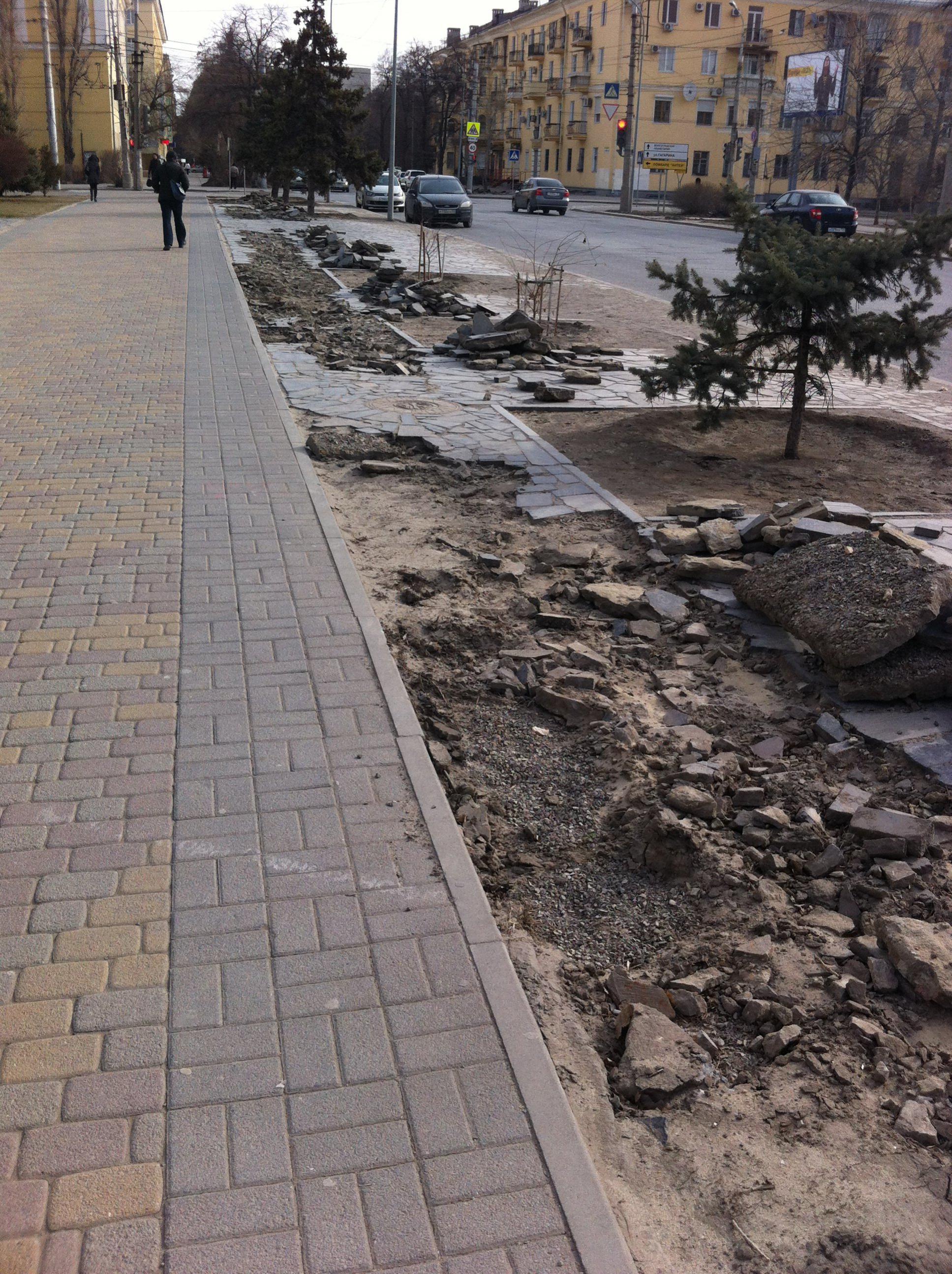 К Дню Победы планируется отремонтировать покрытие, тротуары, обустроить территорию по улице Мира на участке "Планетарий"-"Интурист". Предлагаю по возможности выкладывать фотки процесса для Истории. Заранее извиняюсь за беспокойство проживающих )))))