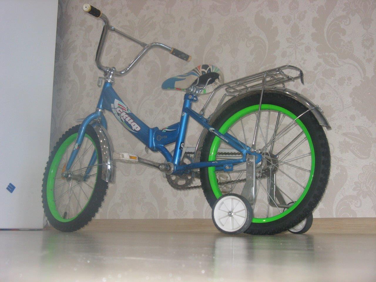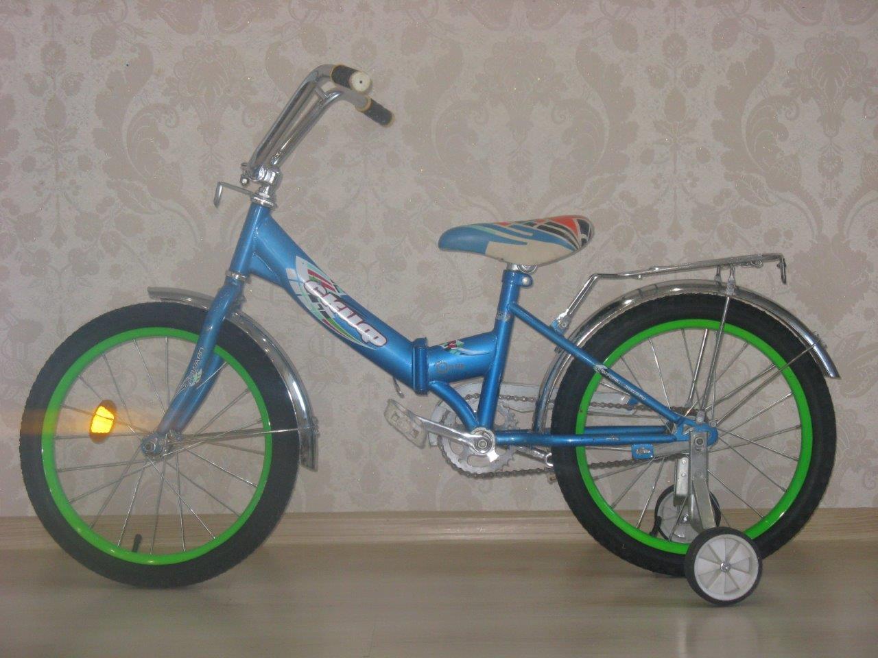 Продам велосипед СКИФ 18" Регулируется высота руля и сиденья для ребенка от 4 до 9 лет. В наличии имеются комплект вспомогательных боковых колес для обучения ребенка. Велосипед складывается для перевозки (помещается в любой багажник автомобиля) или его хранения. Куплены и установлены абсолютно новые камеры и новые покрышки. Произведена предпродажная подготовка. Состояние очень хорошее. Пользовались 1,5 сезона. Осмотр в Центральном районе около ст.Динамо. По договоренности могу подвезти и показать в Красноармейский, Кировский, Советский, Ворошиловский, Центральный район. Цена в магазинах от 6 000 рублей. На фотографиях именно мой велосипед. Продается по причине перехода на велосипед большего возраста. ЦЕНА 2999 рублей. Подробные характеристики: Модель 2013 года детский Складной Материал рамы сталь Конструкция вилки жесткая Конструкция рулевой колонки неинтегрированная, резьбовая Размер рулевой колонки 1" Диаметр колес 18 дюймов Наименование покрышек Innova Материал обода сталь Материал бортировочного шнура металл Возможность крепления боковых колес Боковые колеса в комплекте Тип заднего тормоза ножной Уровень заднего тормоза начальный Количество скоростей 1 Уровень каретки начальный Конструкция каретки неинтегрированная Тип посадочной части вала каретки квадрат Количество звезд в кассете 1 Количество звезд системы 1 Конструкция педалей платформы Конструкция руля изогнутый Настройка положения руля регулируемый подъем Комплектация багажник, крылья Материал рамки седла сталь Комфорт защита цепи
