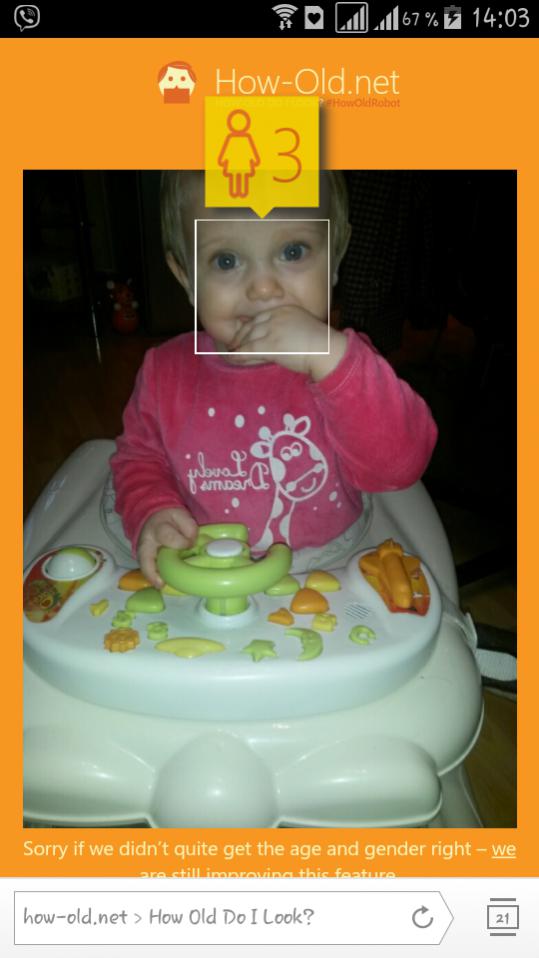Три фото с разницей в улыбании- 28, 34, 36 лет.. Радует, что не больше..но програмка не серьезная. Для каких целей ее придумали? Распознавать возраст собеседника в сети.. Так если фото отретушировано, прога не угадает.
