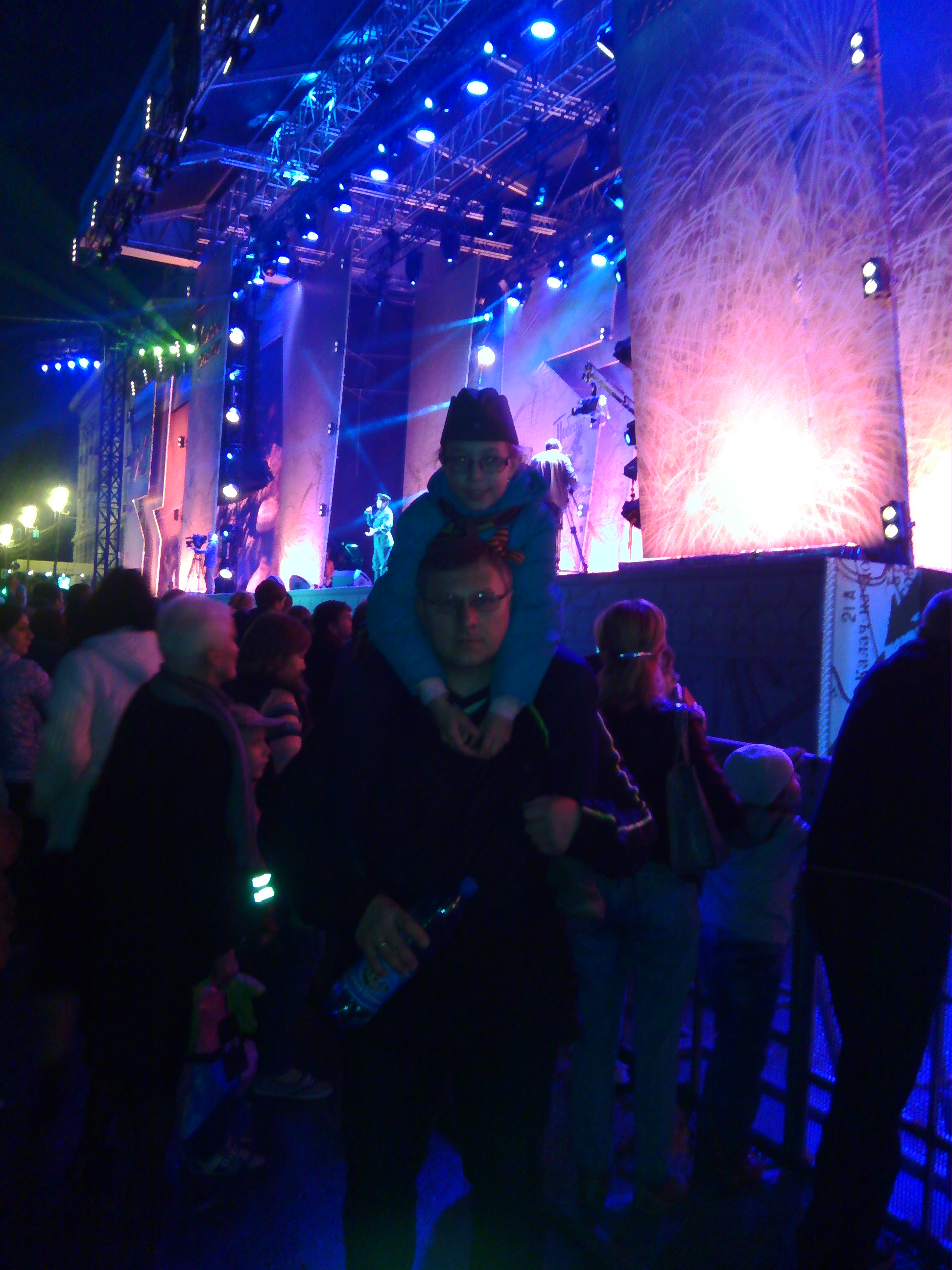 На парад нет, народ толпами ходил, и не знал куда идти. Никого пiлiцiя не пропускала, говорили идите дальше.Краем глаза мимо проезжающие танки посмотрели. Зато на концерт в 20:00 там же попали, и стояли ОЧЕНЬ близко к сцене. Но сидячие места по пригласительным.