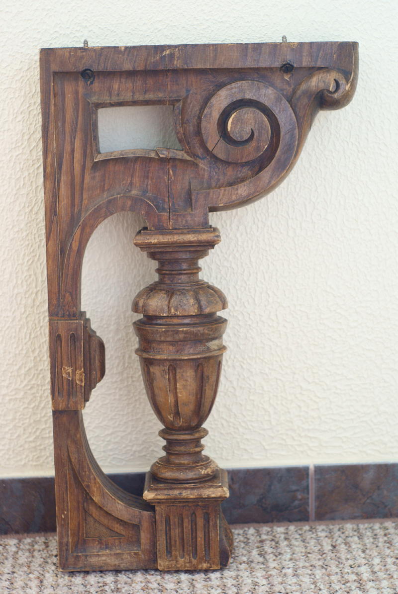 консолька может выйти вполне пристойная. я бы сделала пристенный прямоугольник или полукруг из толстого мрамора старые изделия покрывали шеллаком а ещё можно, как завершающий элемент ограждения лестницы. композиционно объединить широкими перилами)