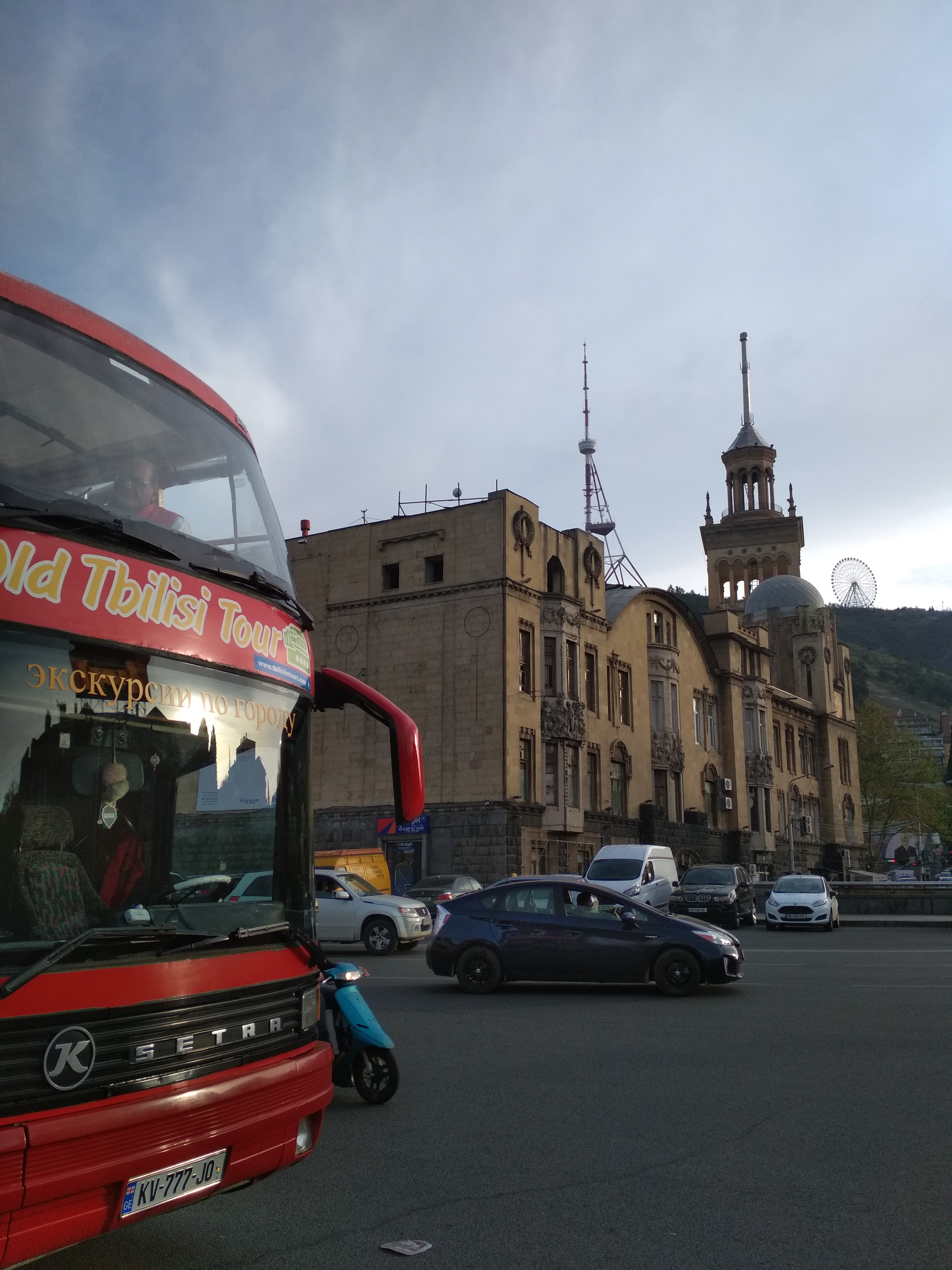 Взяли обзорную экскурсию по городу на 1.5 часа стоимостью 50 лари с человека. Русскоговорящий гид позволит определить, какое место вы хотите посетить для более детального осмотра. Двухэтажный автобус и неограниченное кол-во вина=) На этом автобусе можно перемещаться по маршруту в течение суток.