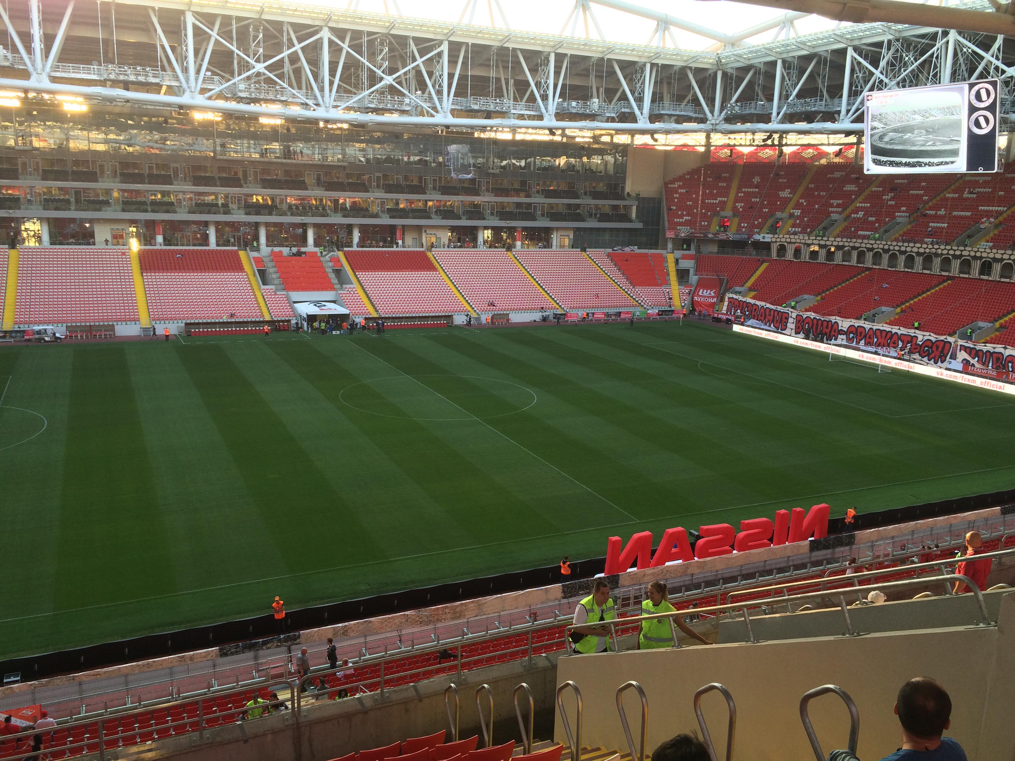 Поделюсь эмоциями от посещения матча Спартак - Зенит, даже если бы матч был унылым, как минимум получаешь эстетическое удовольствие от самого стадиона. На стадионе все очень удобно и продумано, уже начиная от покупки электронного билета на сайте Спартака. Разделение входящих потоков, большое количество рамок и персонала у каждого входа позволяет быстро заполнить стадион без часовых очередей, за 30 мин до начала матча было свободно половина мест, к началу все быстро заполнилось, единственное что пока печалит это сам путь до стадиона - вокруг копают и строят. Внутри стадиона в потрибунных помещениях много общепитовских кафешек и туалетов, алкоголя нет (пиво безалкогольное), расчет только по карте (кеш не принимают). Ощущения что находишься не в России (особенно после похода на топовый матч КХЛ в морально и технически устаревший ледовый дворец ЦСКА). Что говорить - это лучший футбольный стадион России на данный момент! Публика на трибунах разношерстная, мне больше нравится Зенит, оказалось что вокруг есть много людей, которые тоже не торчат от Спартака, было комфортно смотреть весь матч. Фанаты шумели весь матч, питерцы более слаженно и четко их был целый сектор, мясные орали сильнее но особо не разберешь слова кроме "Вперед Спартак" и т.п. Пиротехника дымила несколько раз очень прилично. Сама игра была очень яркой, но было видно, что Спартак индивидуально слабее, а Зенит играет не в оптимальной форме. Дзюбу постоянно освистывали, а он за это реализовал 1 из 2 своих моментов)). У Спартака всю игру делал Промес, тащил, пасовал, обыгрывал, Широкова вообще видно не было (заменили по делу). У Зенита главный мотор был Смольников, постоянно его использовали и он сам брал игру на себя и тащил мяч, Халк и Витсель тоже что-то делали интересное, Данни как-то не впечатлил, а что исполнял Лодыгин это просто кошмар... Голы были очень смотрибельными, что Халк пушечным ударом попал, что Попов исполнил супертрюк (правда там Лодыгин тоже помог). Спартак играл на волевых, Зенит на классе. Шикарный матч и закономерный результат по игре 2:2.