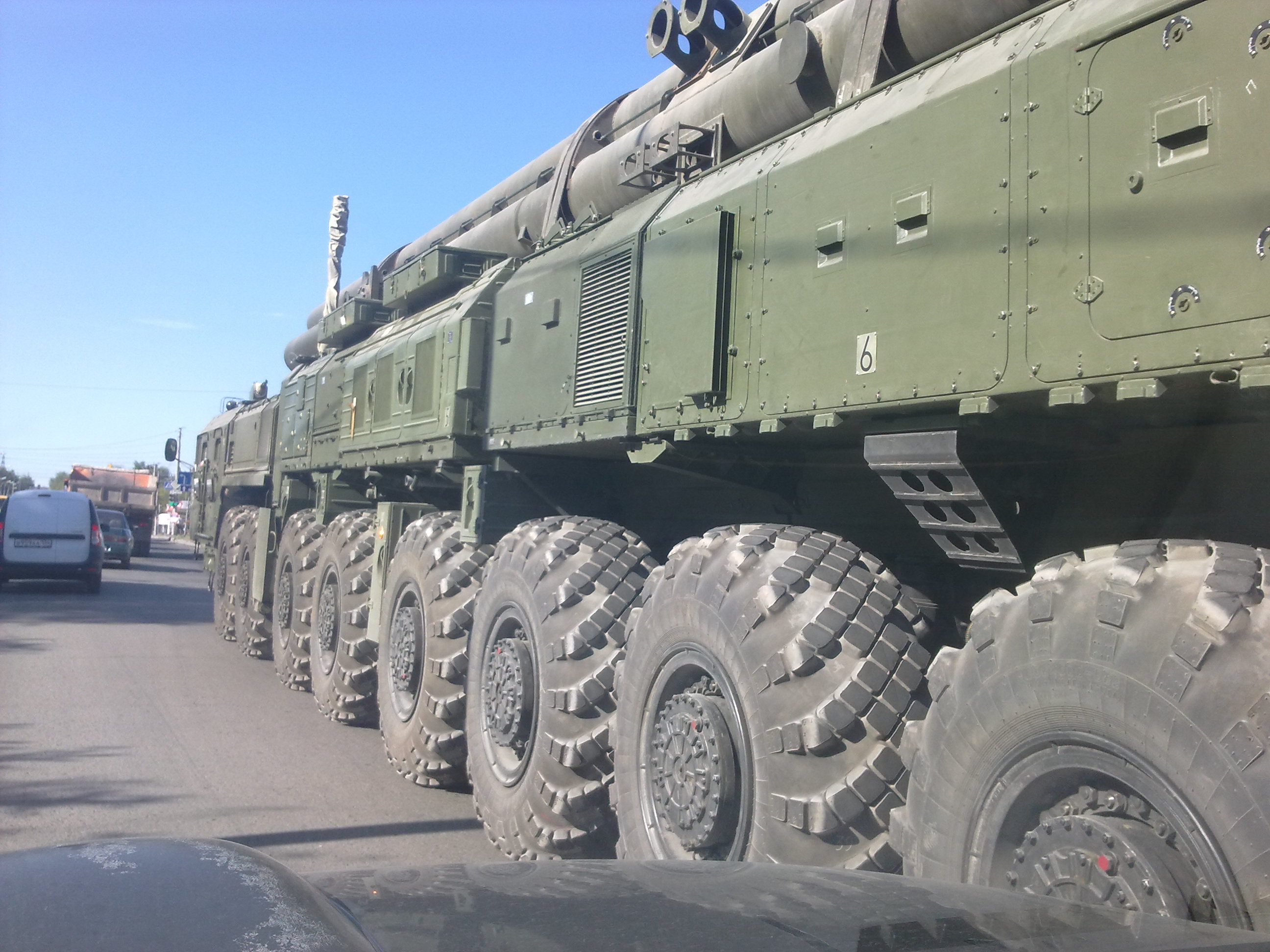 До кучи, вчера по Шурухина снова транспортёр типа Ураган шуровАл с какими-то системами, вверх в сторону области. Ощущения, что болванки, но крепёж какой-то на трубах есть 30072015684.jpg 30072015685.jpg 30072015686.jpg
