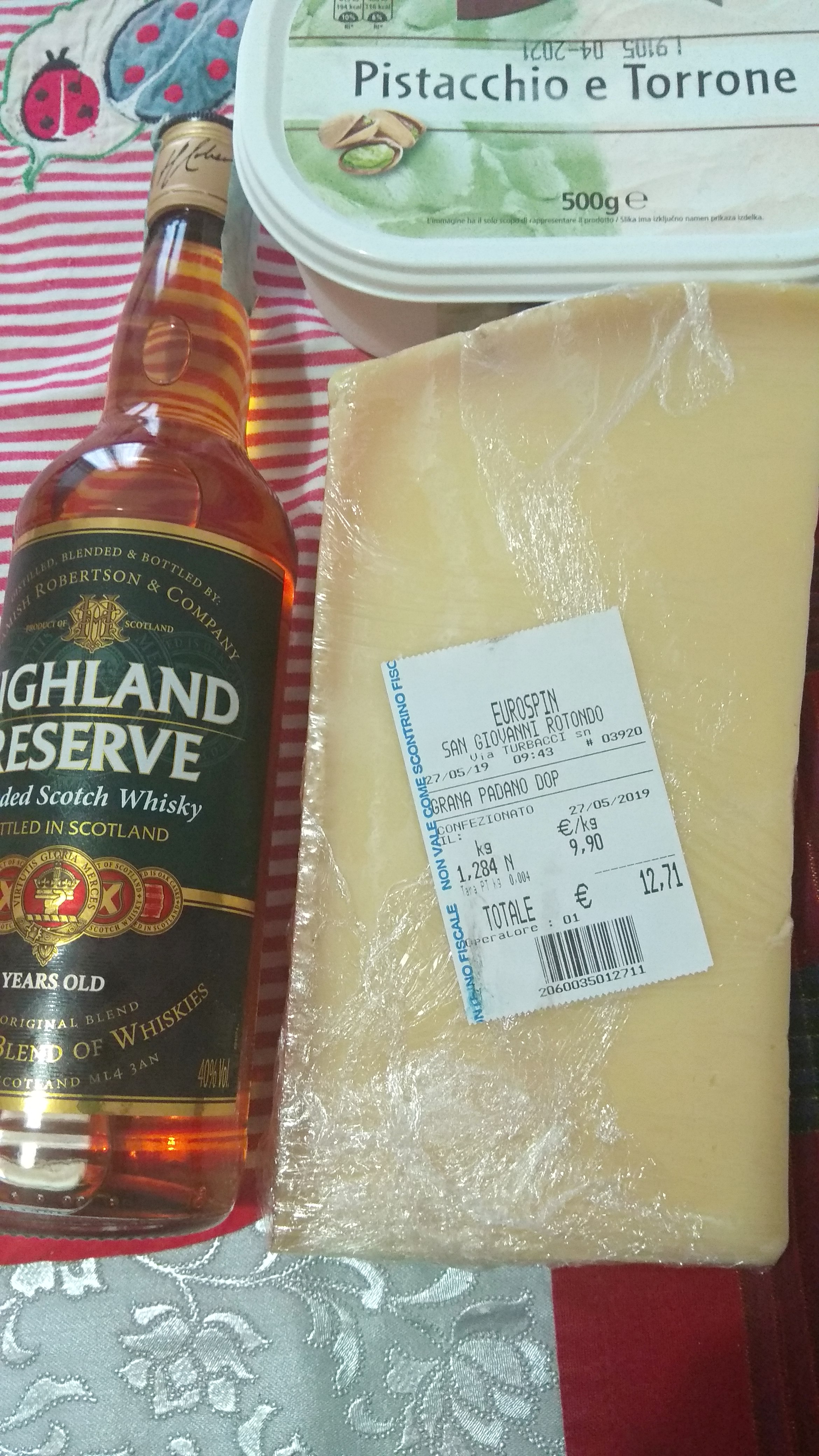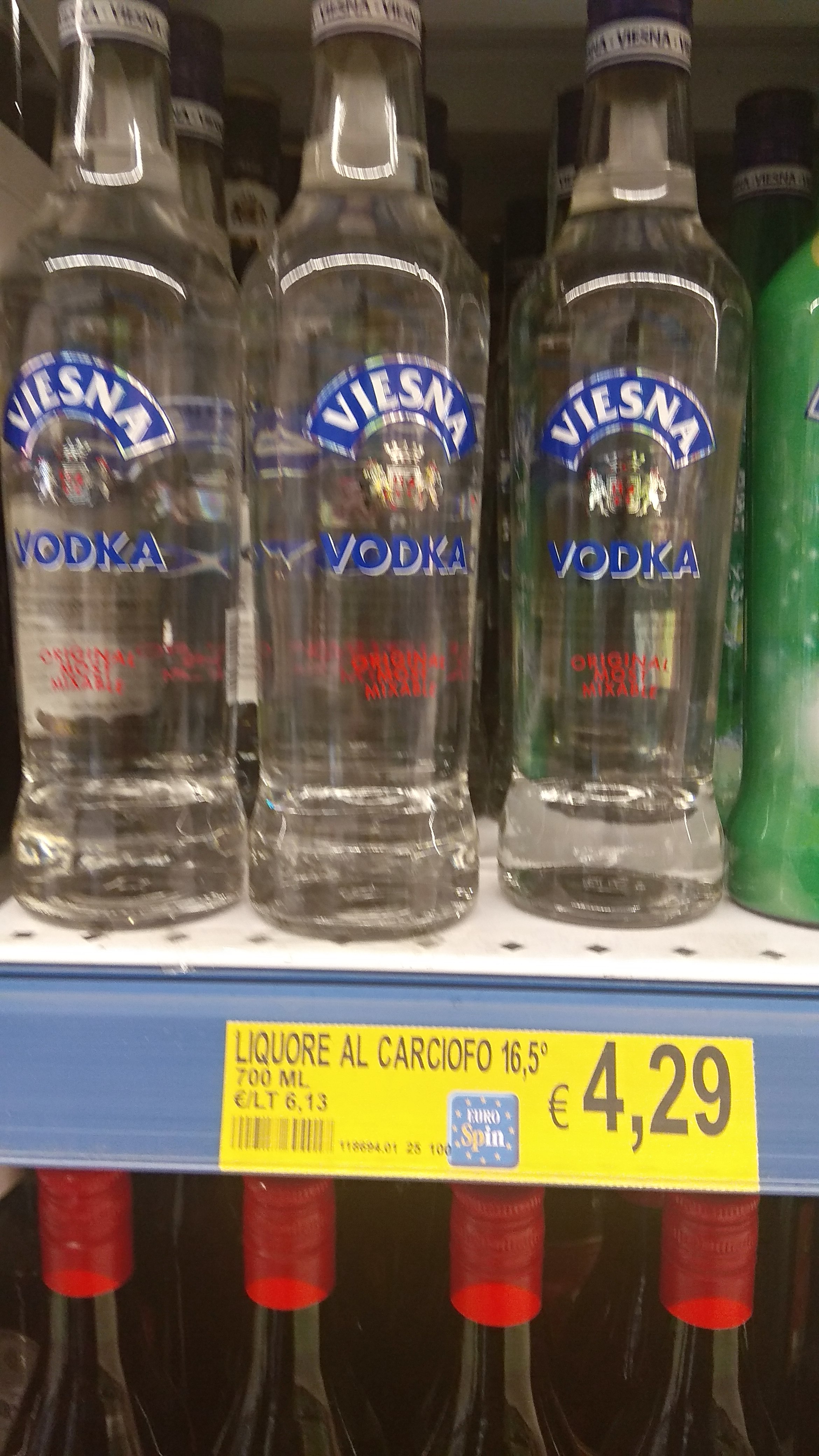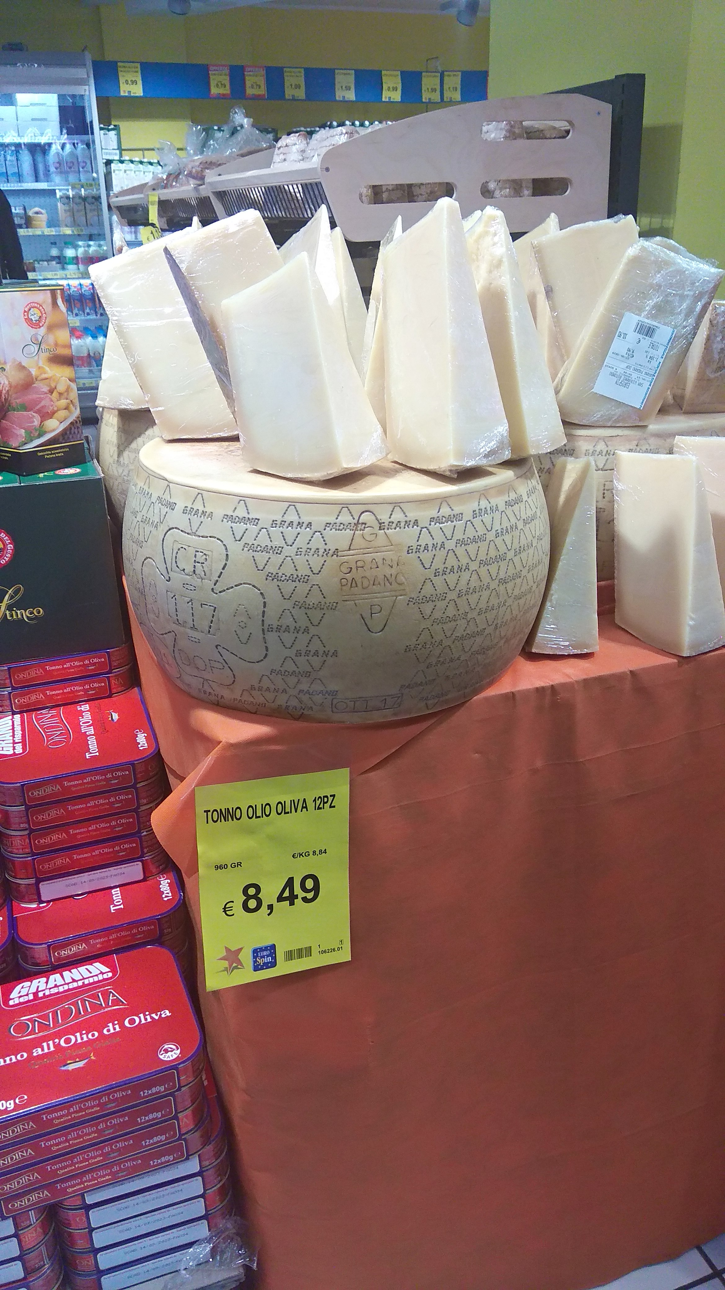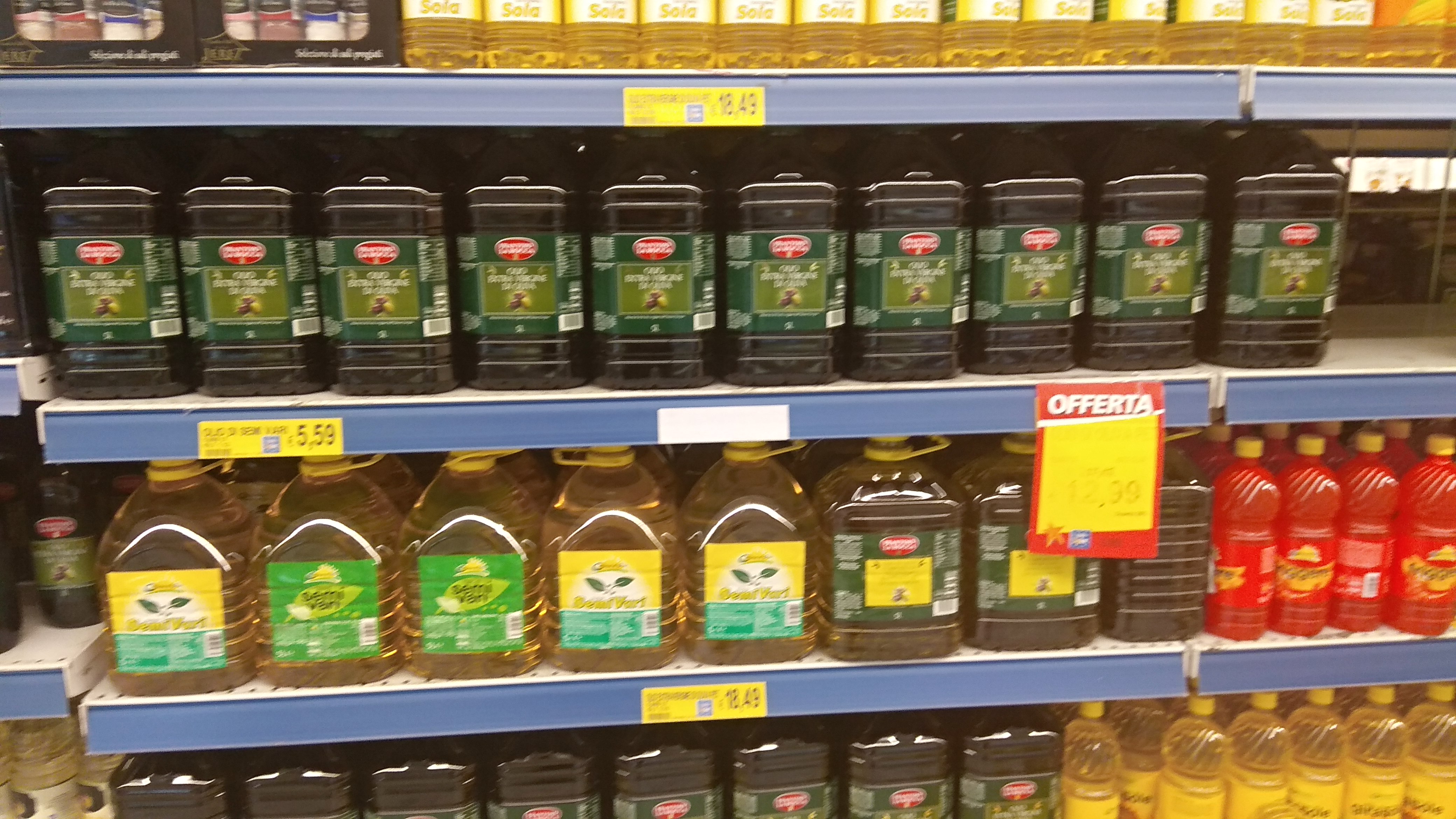 Наверно моцарелой по 2 евро и вискарем 0.7 литра за 5.99. Оливковым маслом по халявной цене,впрочем как хотите .