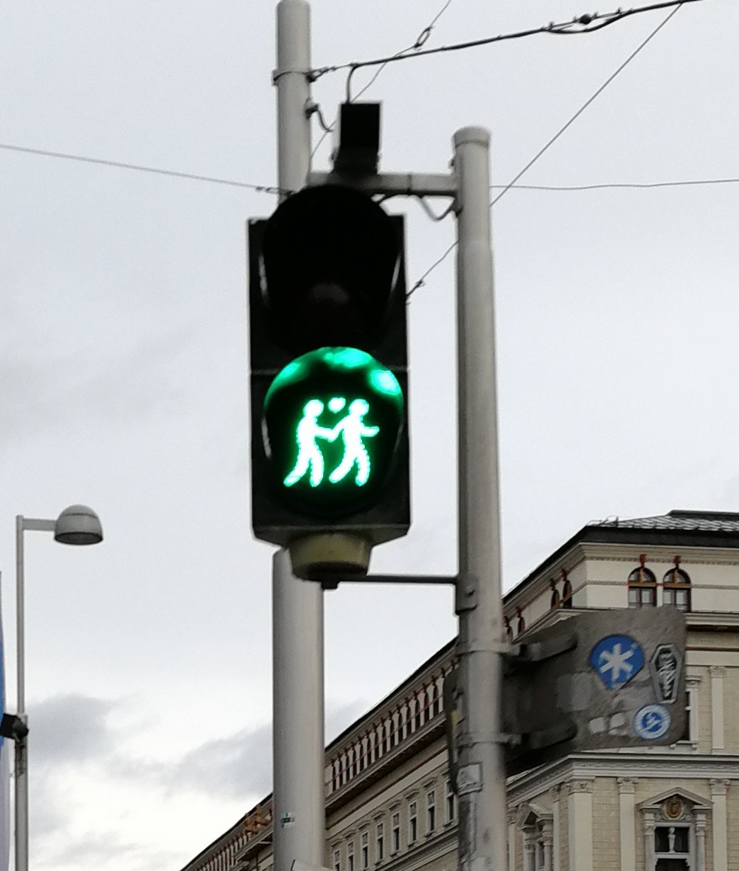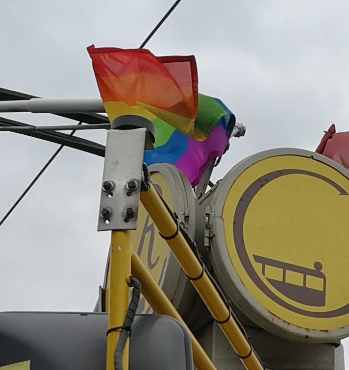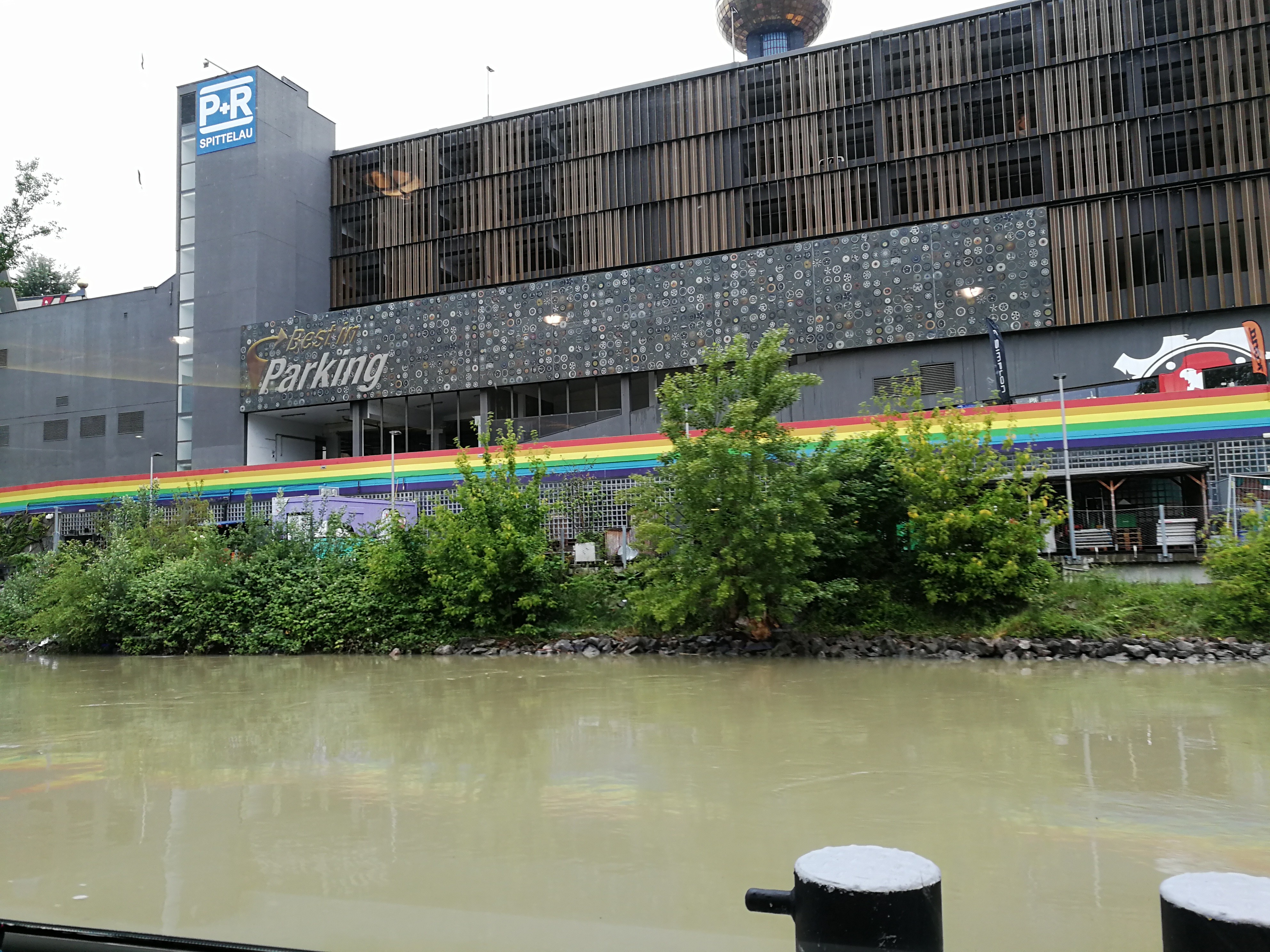 /все эти флаги, видимо из за "Европрайда 2019", проходящего сейчас в Вене. Иначе их и не видно.
