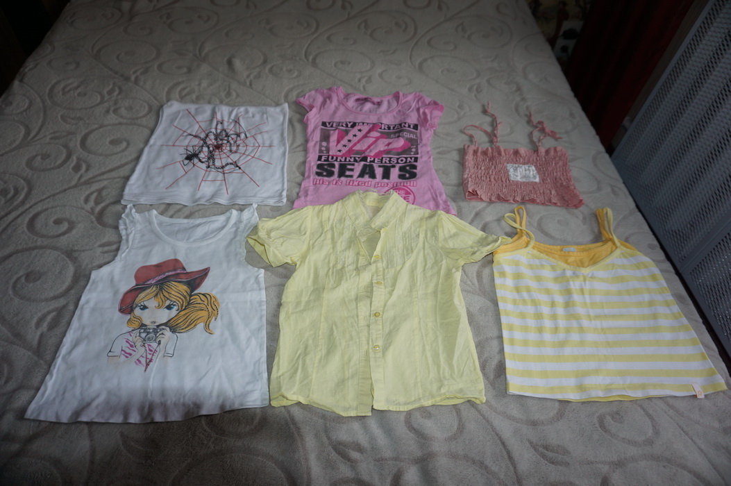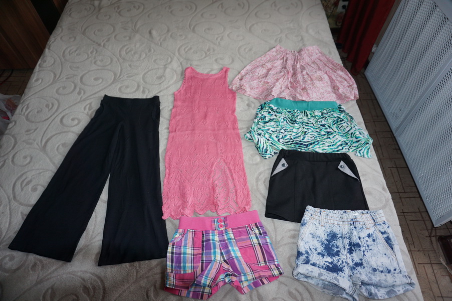 Все в отличном состоянии. 1. Розовое нарядное платье, подклад тонкая легкая х/б ткань. Отдам за 250 р. 2-3. Майки, футболки, толстовки, кофта. Отдам за 50 р. любую. 4. Юбки, шорты, брюки. Отдам за 100 р. любую позицию.